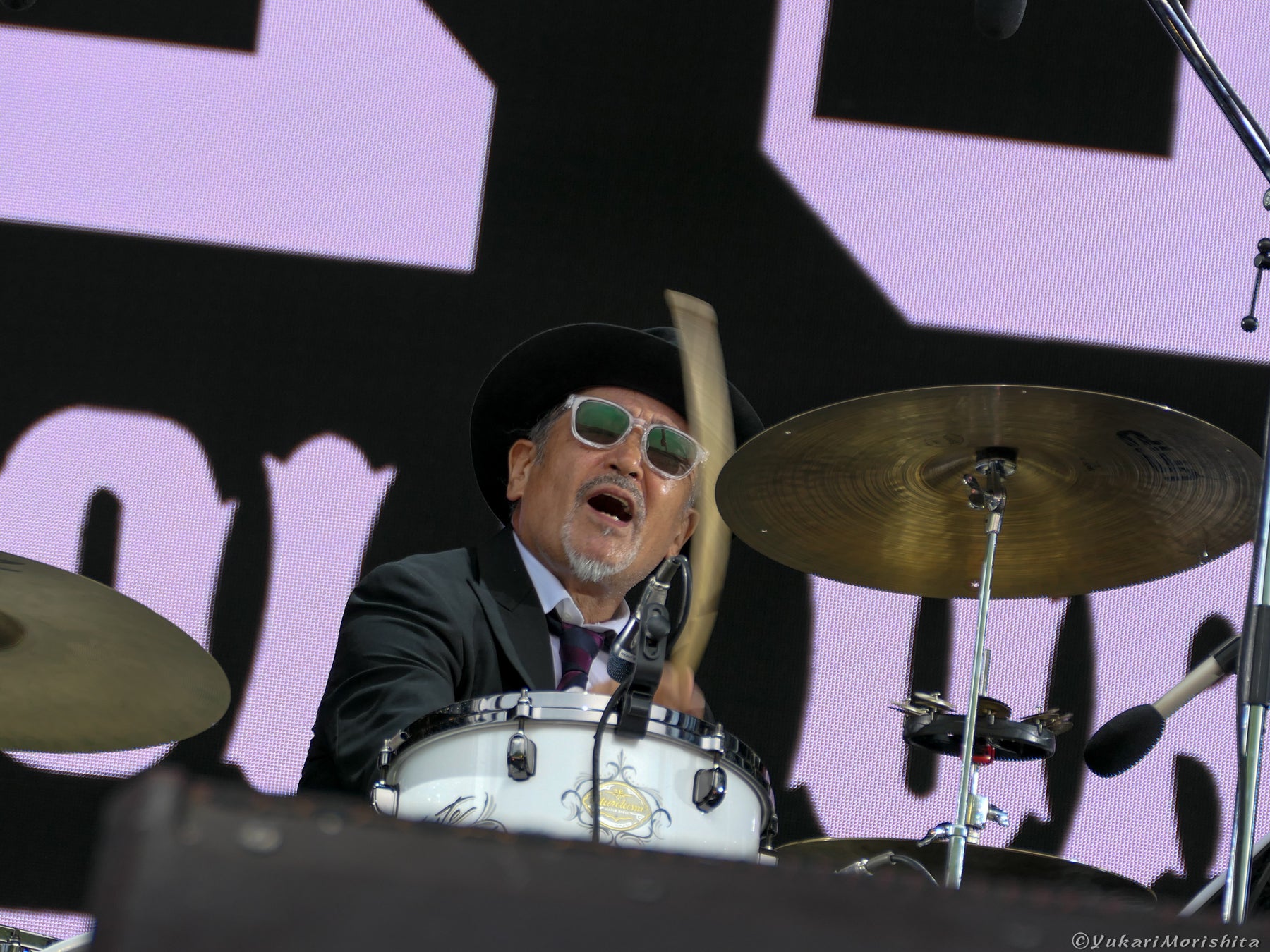 1980年ザ・ルースターズでデビュー。 1988年よりセッションドラマーとして本田美奈子、浅川マキ、布袋寅泰、コンプレック ス、吉川晃司、山下久美子、UA、SION等のレコーディング、ライブに参加。バンドで はRock'n Roll Gypsies、ヒートウェィブは2005年から現在も活動中。 2007年よりフジロックフェスティバルのロンドンチームで会場装飾、2012年より苗場音 楽突撃隊のバンドマスターとして、2013年からはROUTE17 Rock'n Roll orchestraのバ ンドマスターとして、⻑きにわたってフジロックの音楽を牽引している。