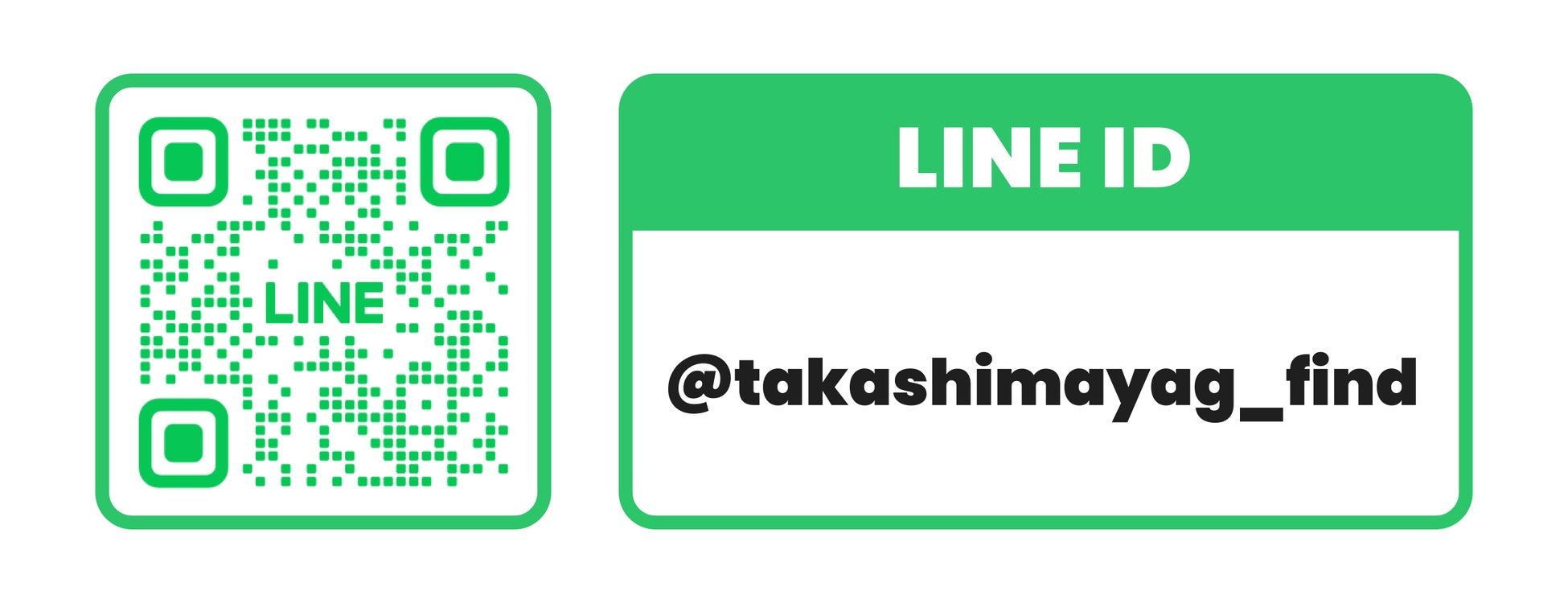 専用のLINEアカウント(ID:@takashimayag_find )宛てにお問い合わせ