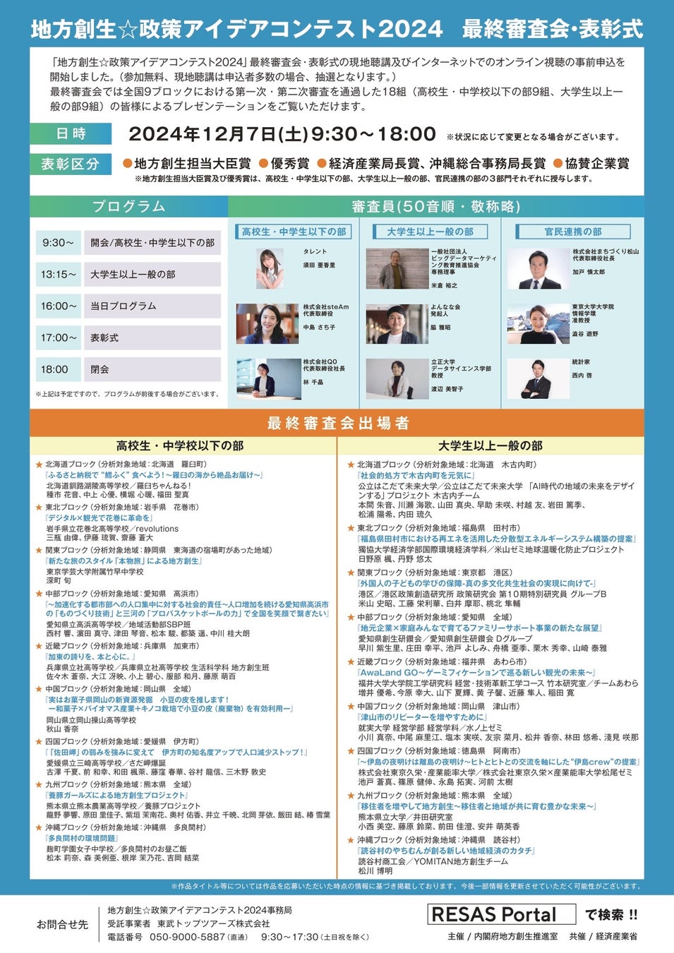 詳しくは、「地方創生☆政策アイデアコンテスト2024」募集要項をご確認ください。