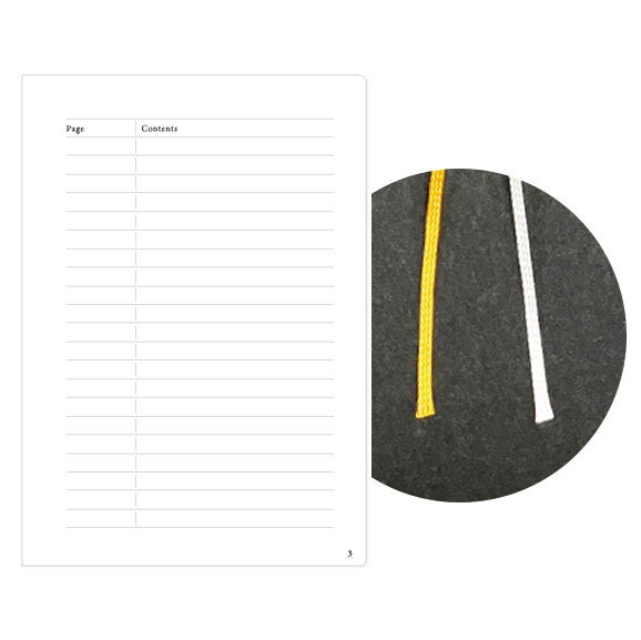 表紙の色に合わせたカラーのしおり紐2本と、収納用の紙ポケットが付属しています。
