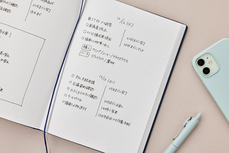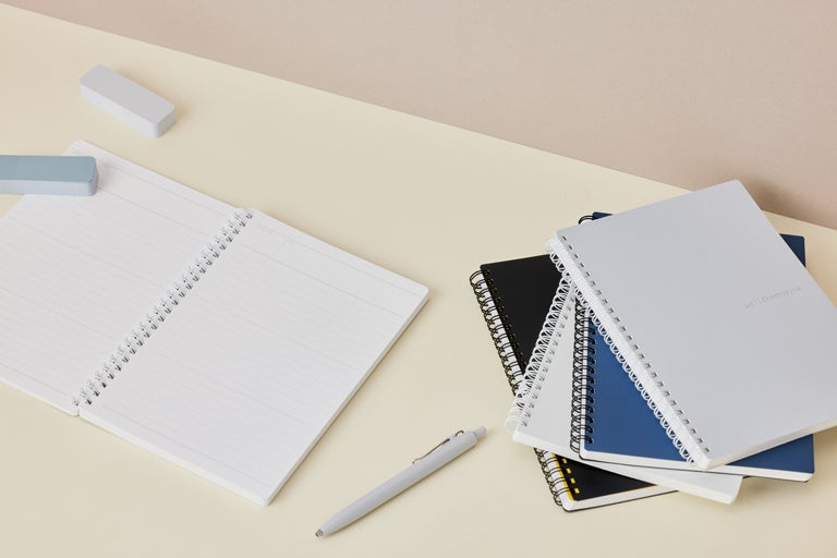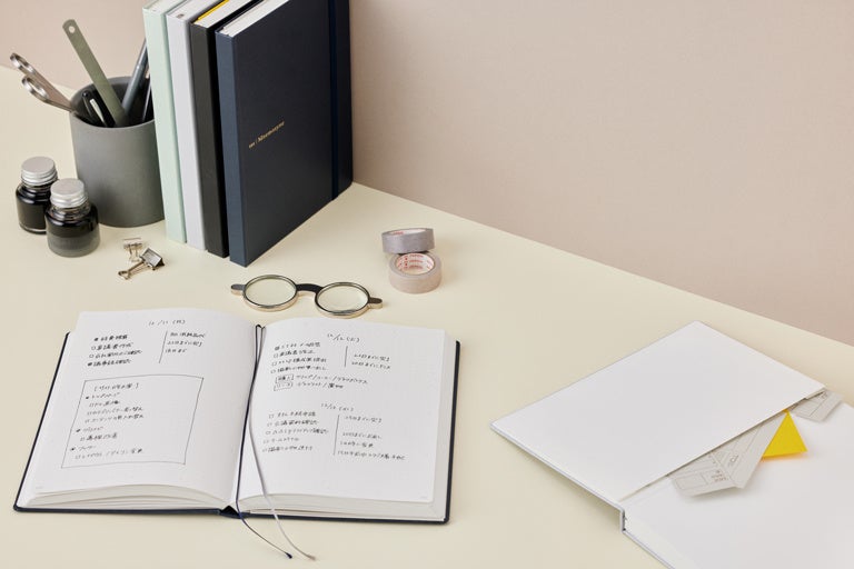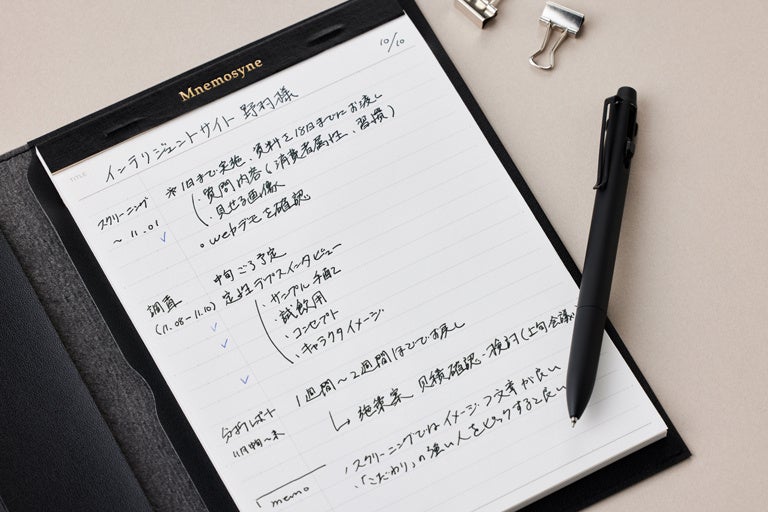 持ち運びがスマートなカバーと差し替え用ノートパッド。情報の整理と振り返りがしやすいマージン罫。