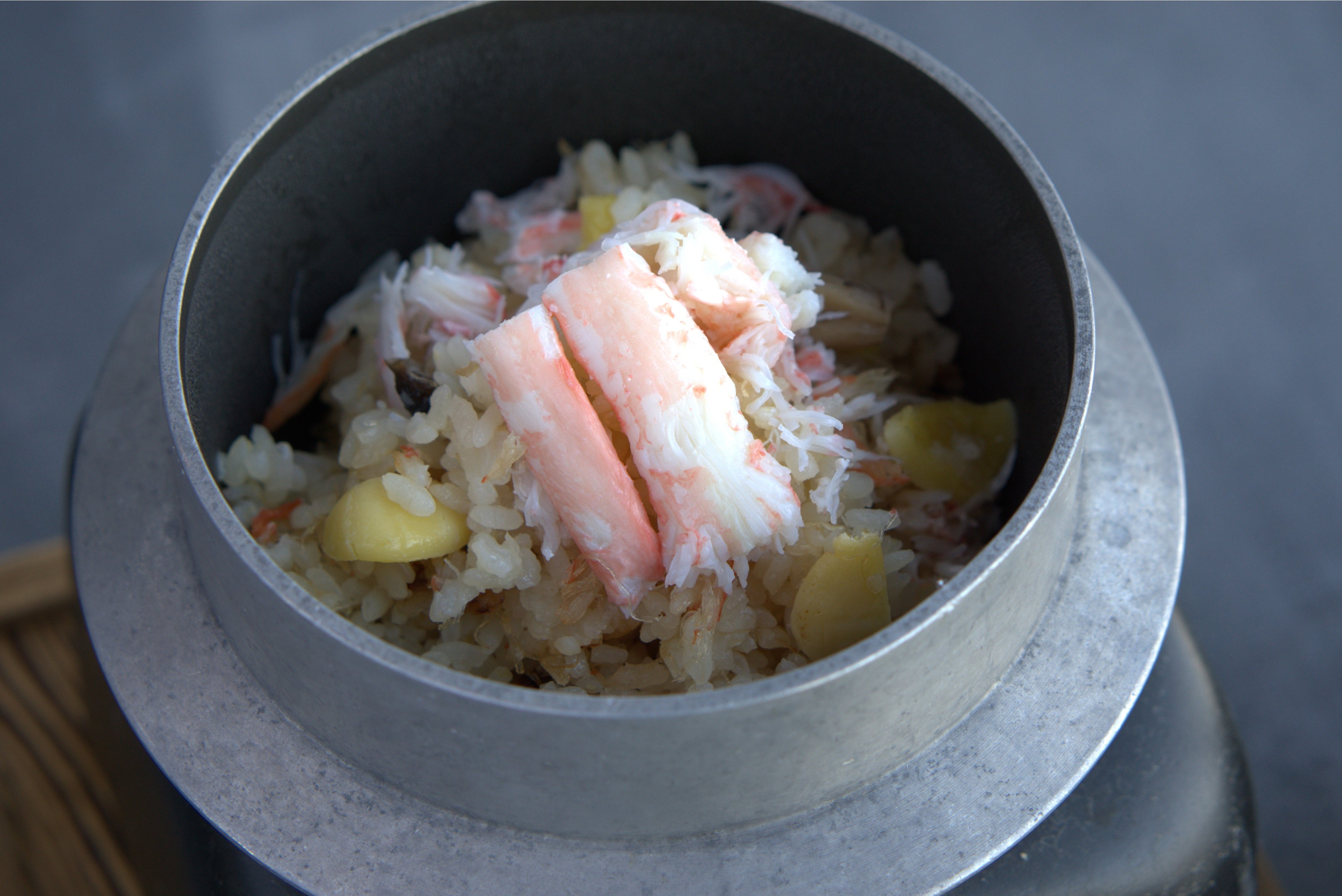 - お食事:ずわい蟹の釜飯、お味噌汁