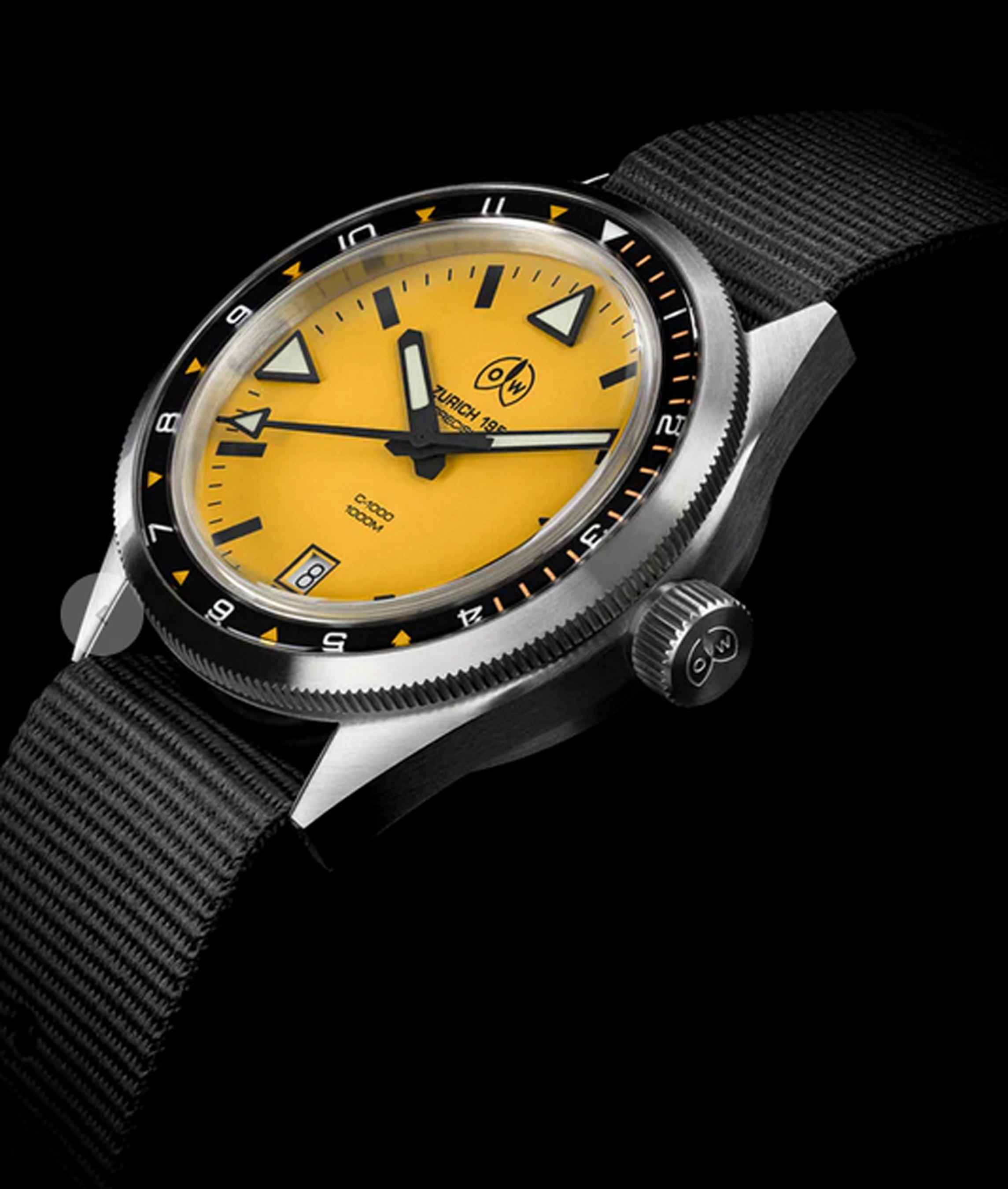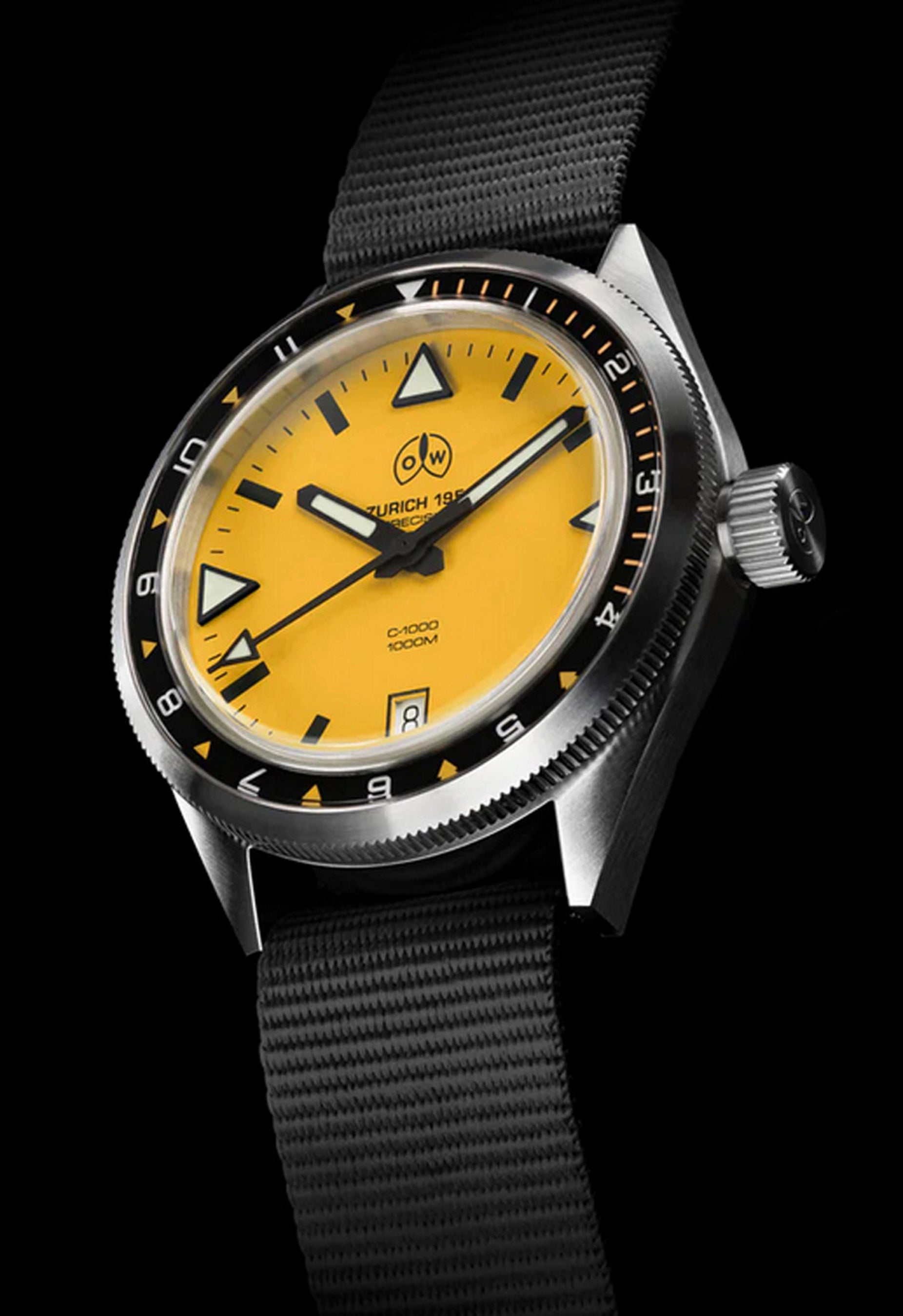 ダイバーズウォッチ史上初の耐水深度1000mに対する鮮烈なオマージュ オレッヒ&ワイスの新作ダイバーズウォッチ『C1000 Y』が登場 2026年3月下旬、石岡商会より販売開始!
