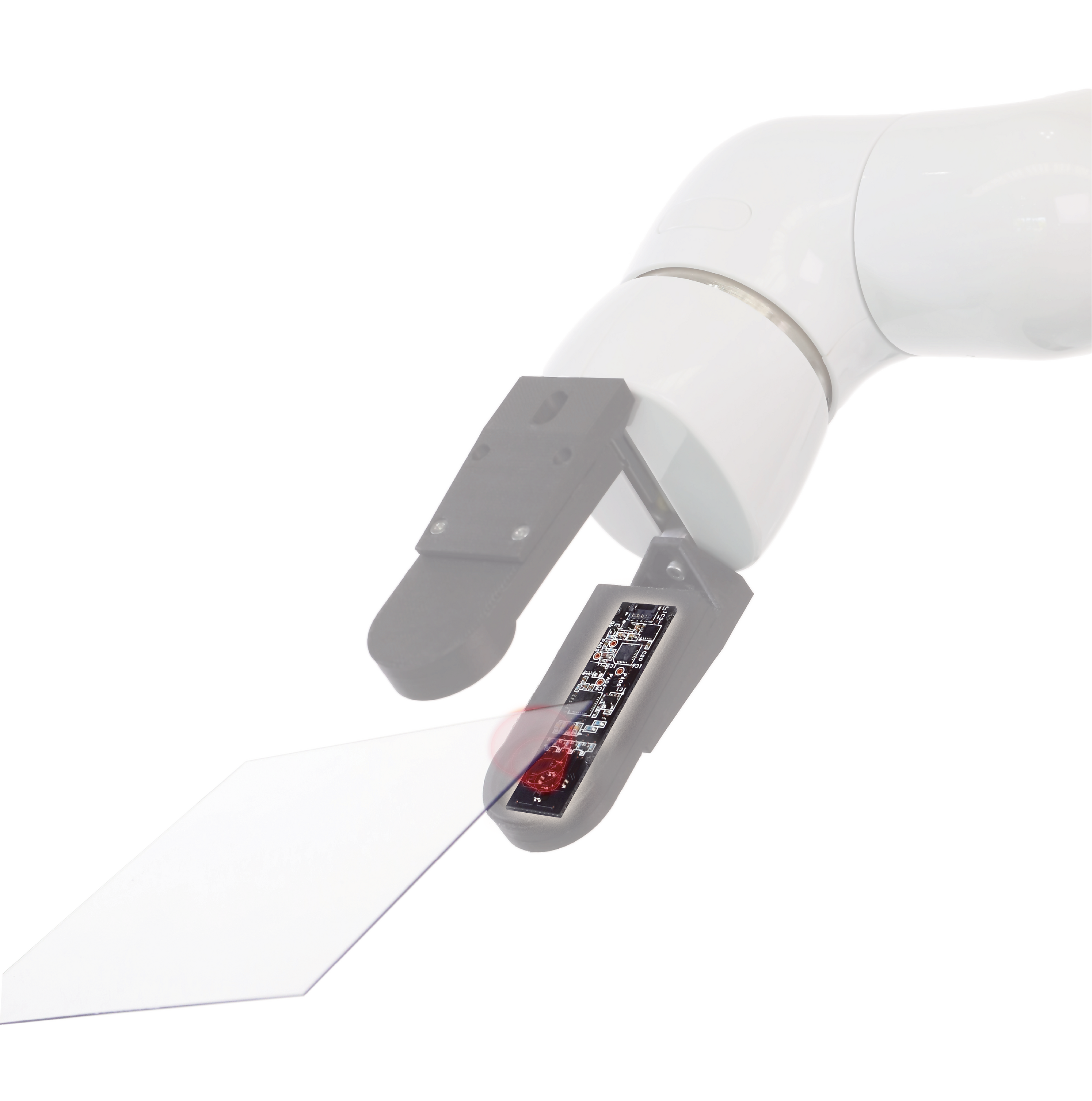 Thinkerが提供する新しい方式を用いたセンサー。カメラを用いることなく、赤外線とAIを組み合わせた独自の高速・高分解能なセンシングによりモノの位置と形を非接触かつ高速に把握できるセンサーです。これにより、従来の産業用ロボットでは難しいとされていた鏡面・透明物質の取り扱いや、現場環境に応じた臨機応変なピックアップが可能となり、ロボットハンドによるピッキングの可能性を飛躍的に広げることができます。また、ティーチング(ロボットに作業を教え込む工程)の時間や労力を大幅に軽減できることから、これまでとは異なる領域でのロボットハンドの活用も期待されています。