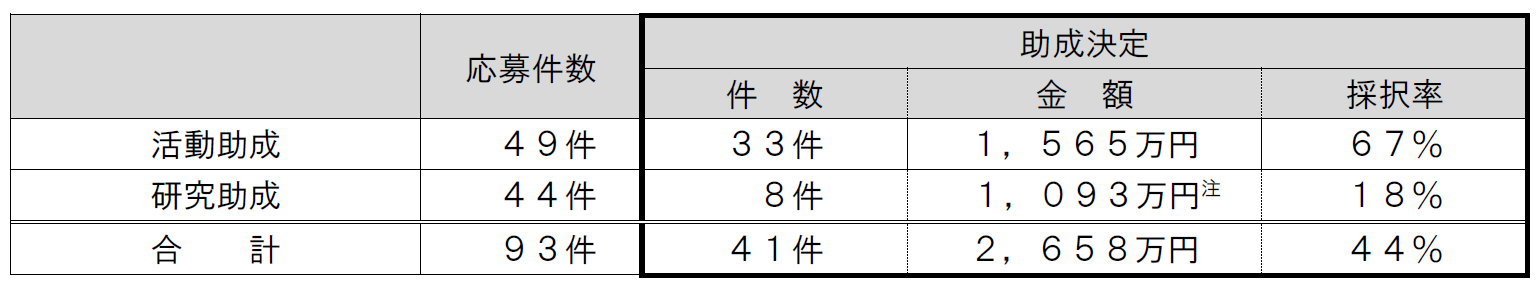 注)研究助成(2年助成)の金額については、1年目の助成金額のみ計上しています。