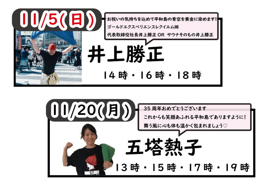 35周年を記念し「過去最多数の熱波師集結」「豪華景品サイコロイベント」等多数のイベントを開催いたします。