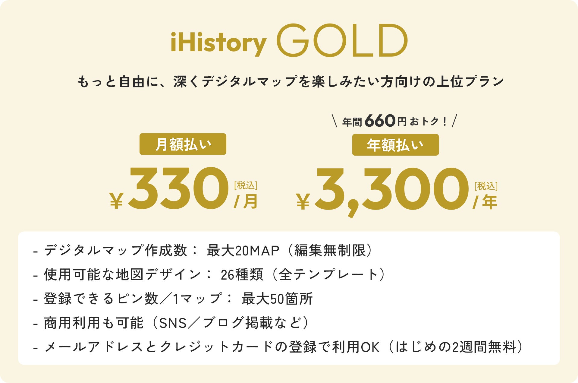 ■ 上位プラン「iHistory GOLD」も提供開始!(月額330円、年額3,300円)