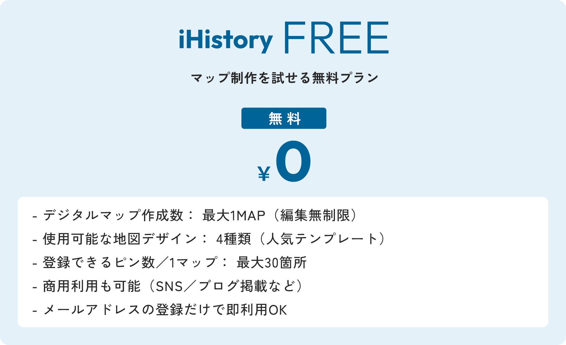 『iHistory FREE』は、PointMap+の魅力を無料で体験できる新しいプランです。