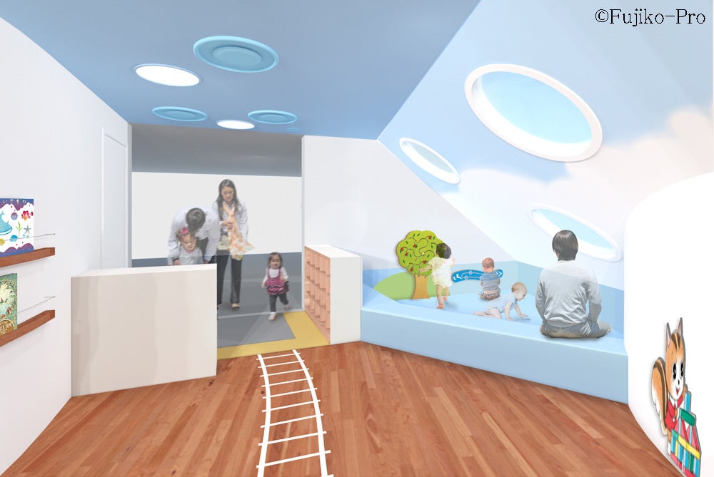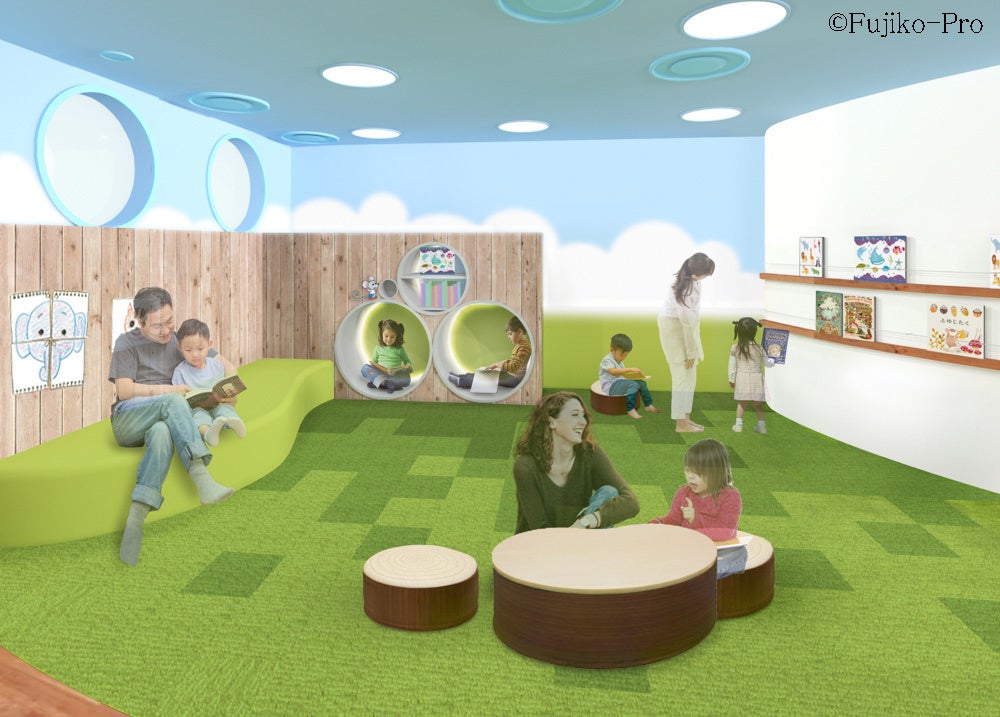 未就学児が利用できるスペース(保護者要同伴)。藤子・F・不二雄先生が幼児向けに描いた作品『ぞうくんとりすちゃん』の世界観をモチーフにした、優しさに溢れた世界が広がる、お子さまも保護者の方もひと息つける空間です。