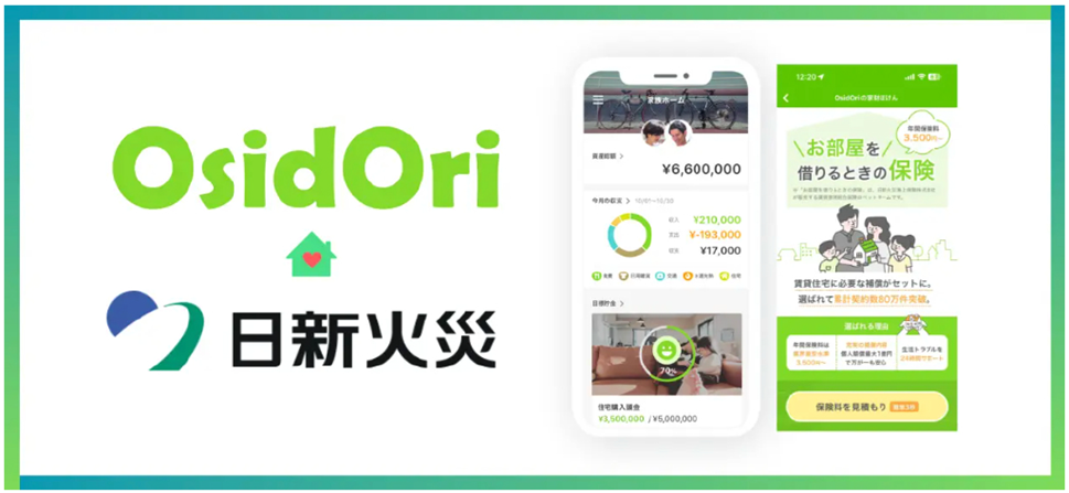 【OsidOriの家財ほけん】夫婦・カップルの共有家計簿・貯金アプリ「OsidOri」上に賃貸住宅入居者向け家財保険のご案内ページをリリース