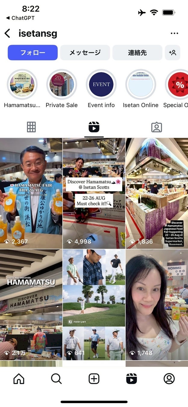 フェア開催中、現地のInstagram・YouTubeインフルエンサー8名が来場。うなぎパイや遠州織物など浜松市の地域特産品をSNSで発信し、連日多くの来場者で賑わいました。SNSの拡散により、浜松ブランドの認知向上とシンガポール市場でのプロモーションとして高い効果を発揮しました。