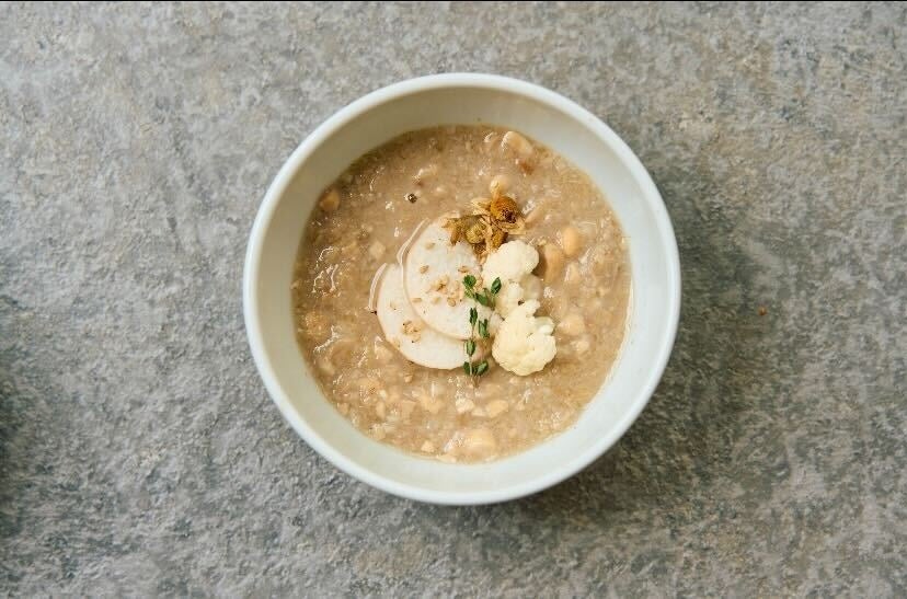 テーマは、それぞれの食材がもつ栄養素を組み合わせながら、パートナーが本来必要とすべき動物性タンパク質に着目した「食べるスープ」。