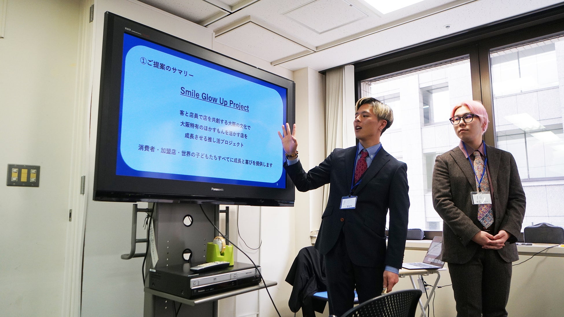 世界の若手起業家によるネットワーク「EO(Entrepreneurs' Organization、起業家機構)」に所属する「EO Osaka(運営:一般社団法人EO ALL KANSAI)」は桃山学院大学ビジネスデザイン学部(所在地:大阪府大阪市)と産学連携し、3月24日(月)大阪観光局にて、大阪の飲食業を活性化させ、社会貢献と地域経済を活性化することを目的とした「Smile Coupon」プロジェクトの価値を高めるビジネスアイデアの発表会を実施しました。