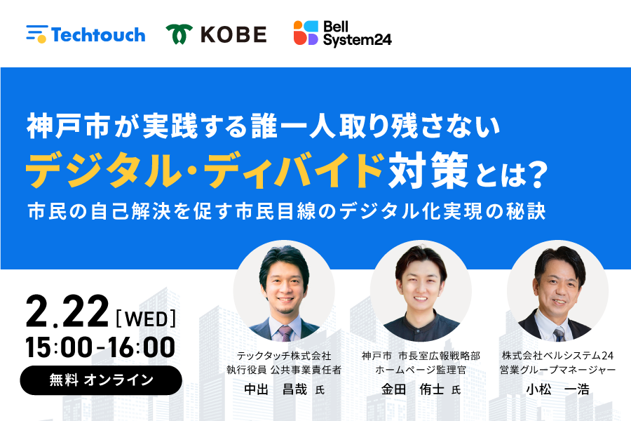 ベルシステム24とテックタッチ、自治体向けオンラインセミナー「神戸市が実践する誰一人取り残さないデジタル・ディバイド対策とは?」を2月22日(水)に開催