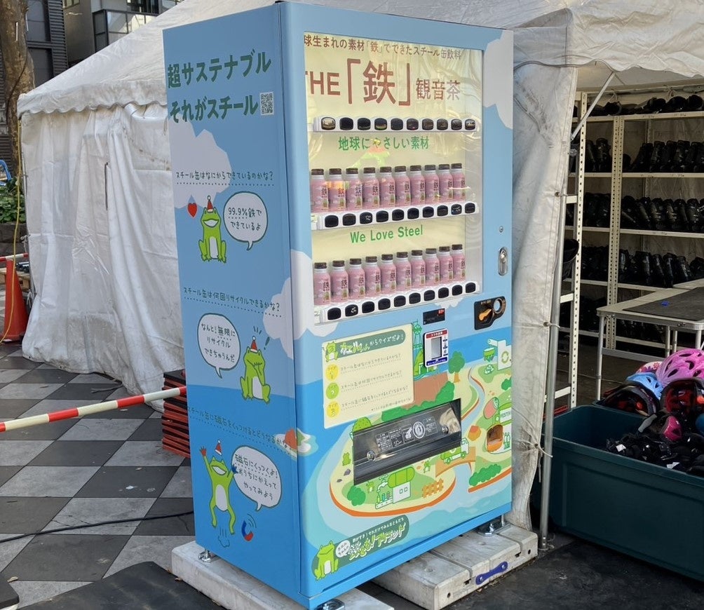 本取り組みは、環境に優しい素材であるスチール(鉄)を多くの方に体験してもらうことを目的に千葉市で行われた「YORU MACHIスケートリンク」とコラボレーションした期間限定イベントです。期間中はオリジナルラッピングが施されたQR付自動販売機を設置。スケートリンクを利用した方にQRコードが付いたメッセージカードを配布し『THE鉄観音茶』を無料で提供しました。