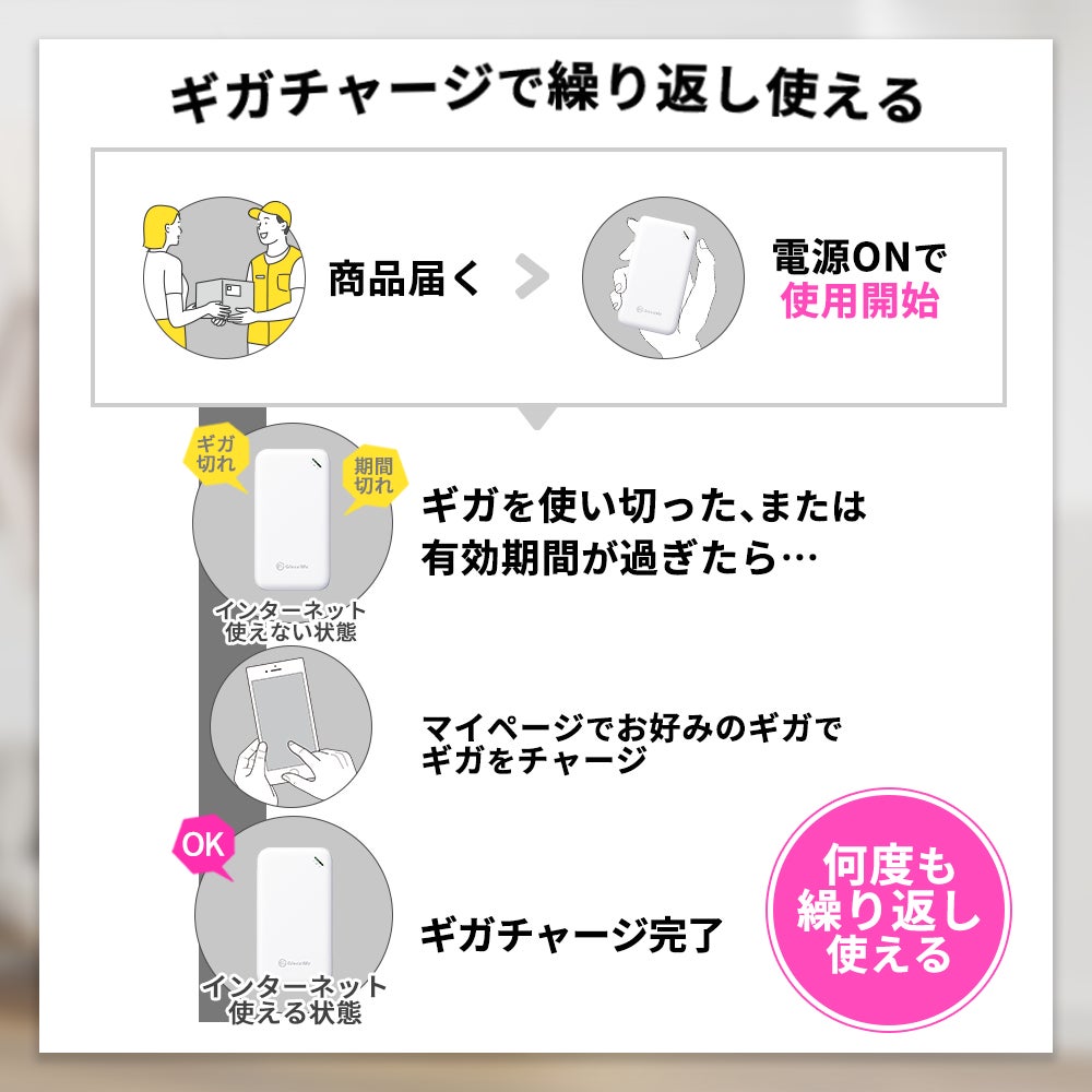 "必要な時に欲しい分だけギガをチャージ"するシンプルな仕組みを提供している『リチャージWi-Fi』から、形も操作もシンプルな、誰でも使えるWi-Fiルーターを販売開始しました。