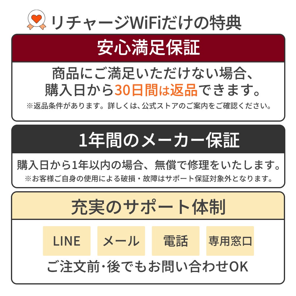 2022年6月に販売開始した「リチャージWiFi」は、『誰でも使える通信環境』を実現させるため下記を全て不要にすることを実現したサービスです。