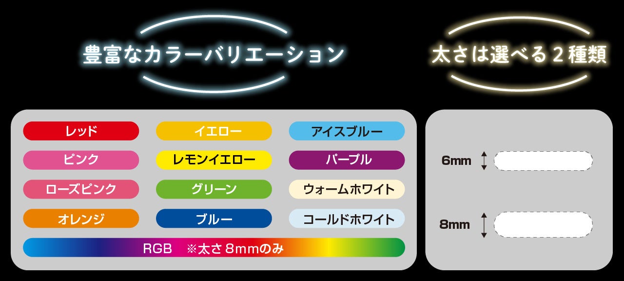 単色12色+フルカラーRGBから選べるカラーバリエーションで色とりどりのネオンが細かな色彩まで表現!