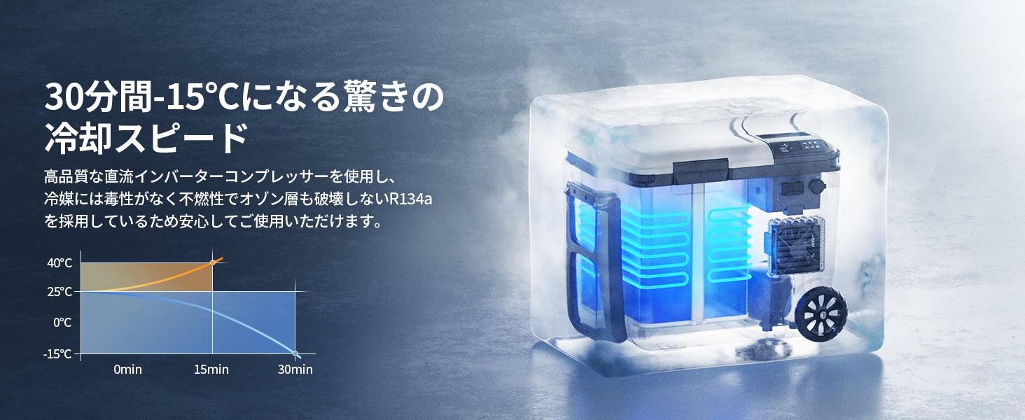 冷却モード:30分で-15℃、55分で-18℃に到達