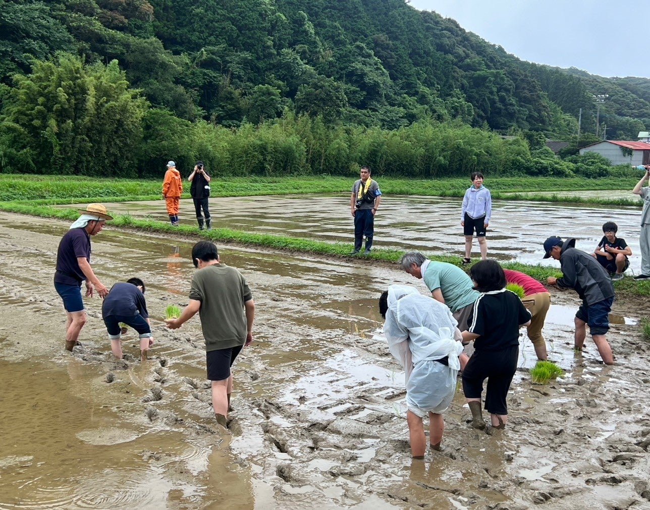 一般社団法人 熊本私学教育支援事業団(代表 仙波達哉)が運営する不登校やひきこもりの小中高生に学びの場を提供する熊本学習支援センター(以下 センター)は、熊本学習支援センター天草下田南校 (熊本県天草市)にて、2024年6月23日(日)に体験イベント「田植えばしてみらんねin下田南」を実施しました。各教室から生徒11名、スタッフ8名が参加し、下田南地区の振興会を始めとする地域の方々のご協力のもと大成功となりました。