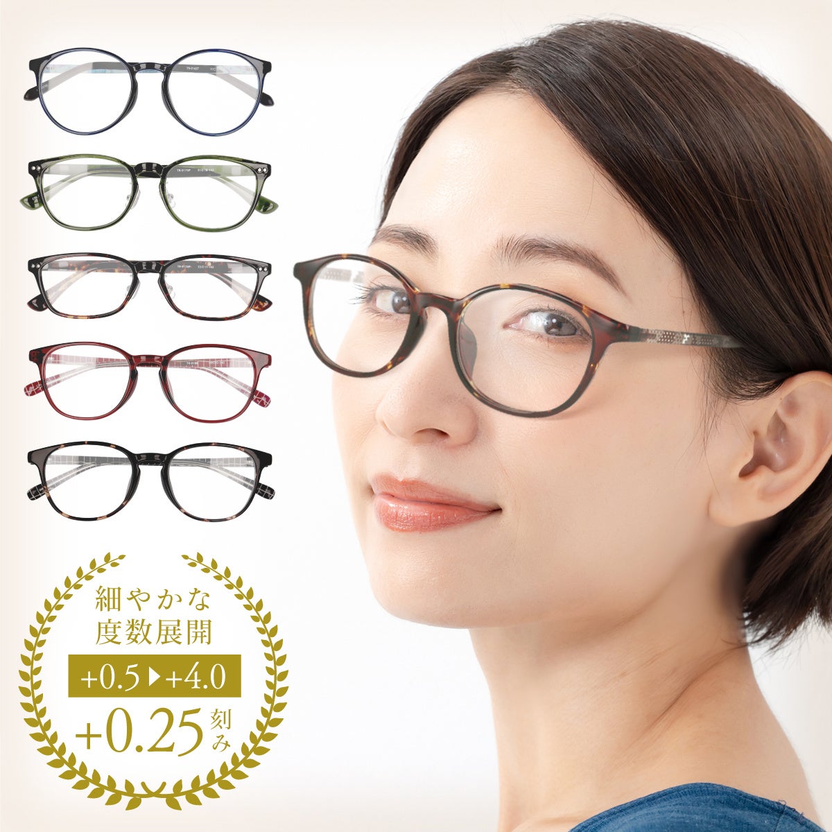 24種類のフレームと+0.25刻みの細かい度数展開で、自分にぴったりの老眼鏡が見つかるおしゃれなシリーズ。