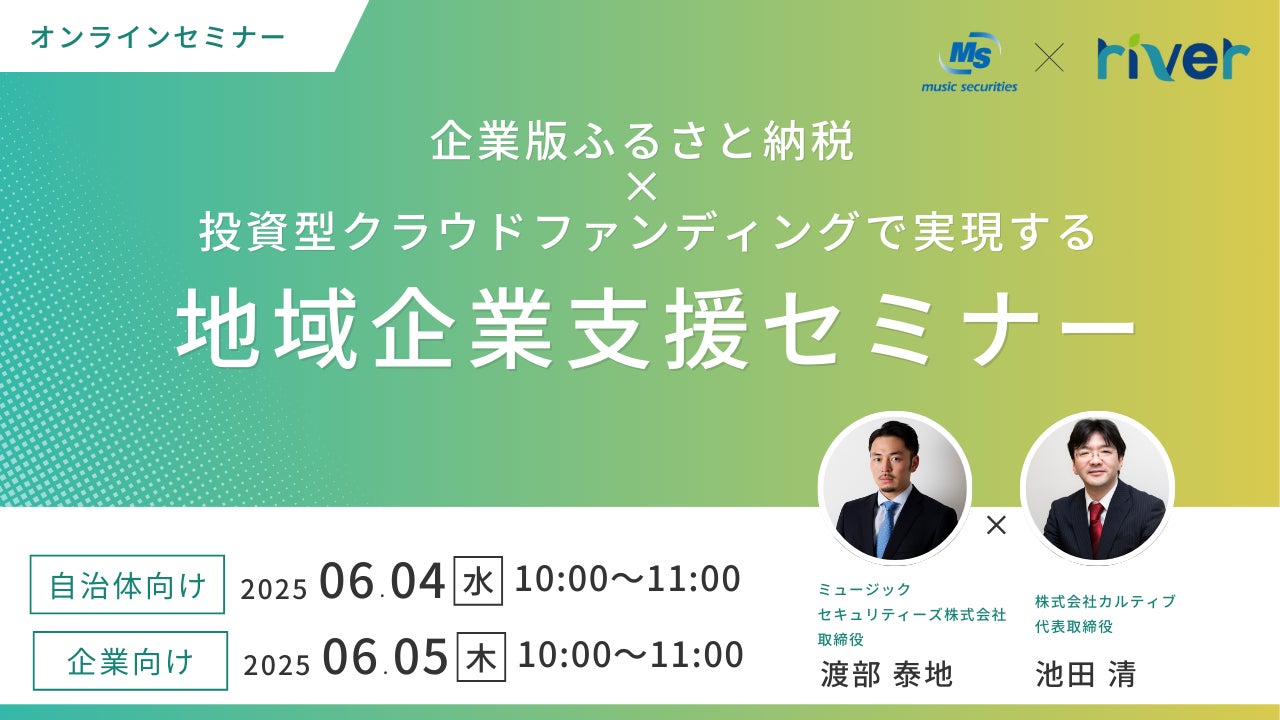 両社の強みを活かした取組みとして、2025年6月4日(水)および6月5日(木)に、共催オンラインセミナー「企業版ふるさと納税を活用した地域支援の広げ方」を開催いたします。
