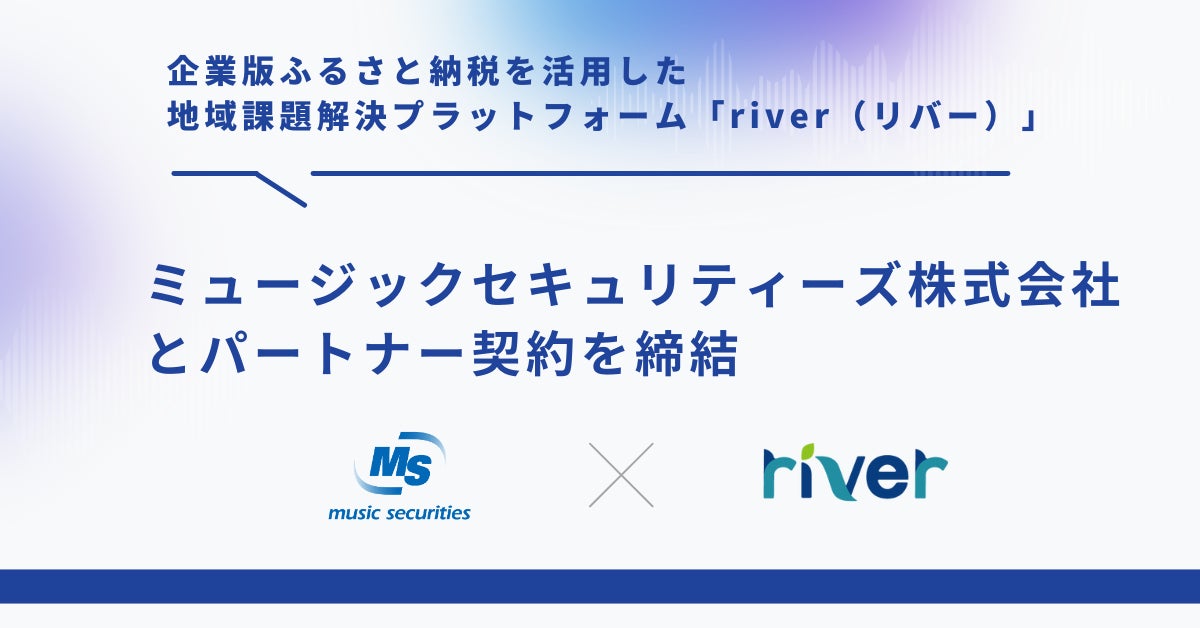 企業版ふるさと納税を活用した地域課題解決プラットフォーム「river(リバー)」を運営する株式会社カルティブ(本社:神奈川県横浜市、代表取締役:池田 清)は、ミュージックセキュリティーズ株式会社(本社:東京都千代田区、代表取締役社長 中園浩輝、以下ミュージックセキュリティーズ)と企業版ふるさと納税の地域課題解決に向けた総合サービス支援事業に関する「パートナー契約」を締結したことをご報告いたします。