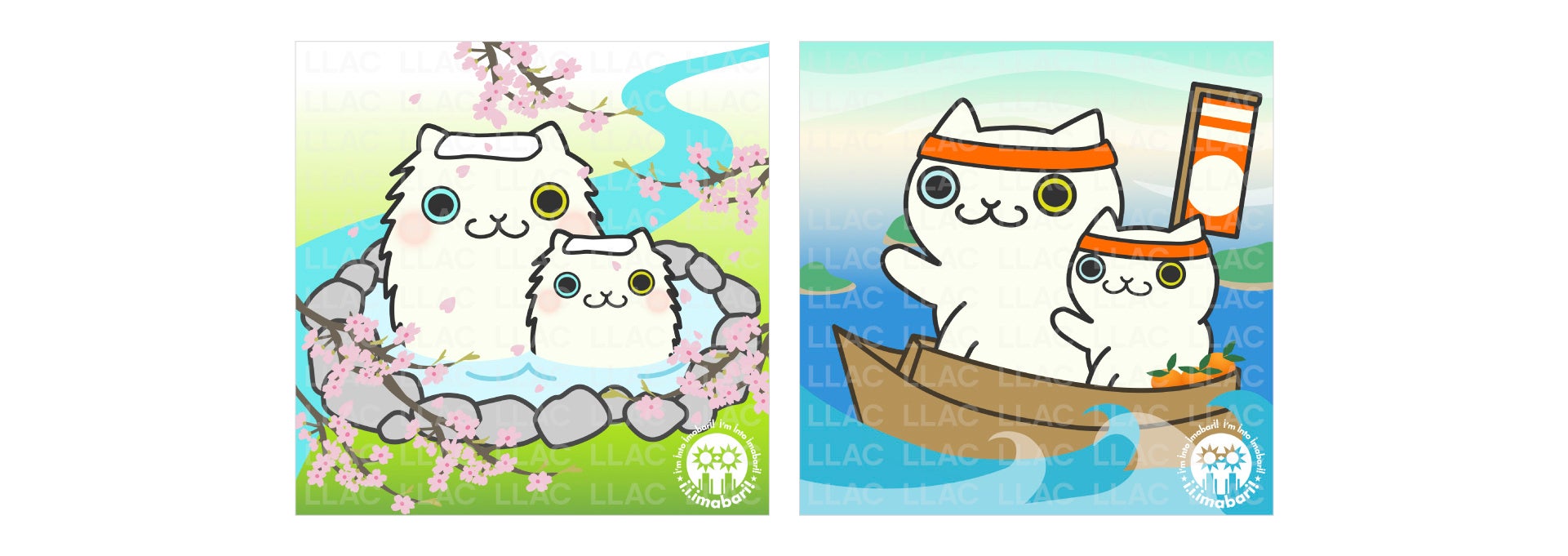 本フェアで配布するNFTは、LLACのリードデザイナー・猫森うむ子氏の描き下ろしデザイン。鈍川温泉、村上海賊をモチーフにLLACの人気シリーズであるKODONAをあしらった、限定デザインです。