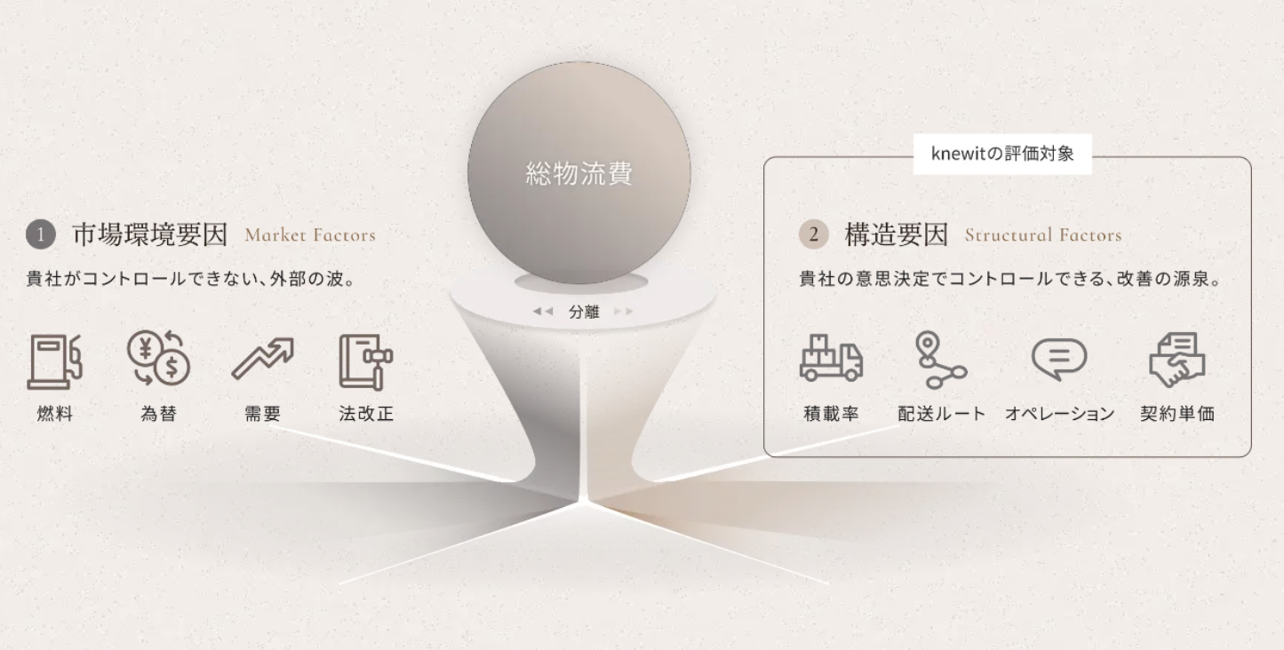 私たちが提案するのは、物流費を2つの要素に完全に分離・可視化するアプローチによる改善計画の立案と実行・検証です。