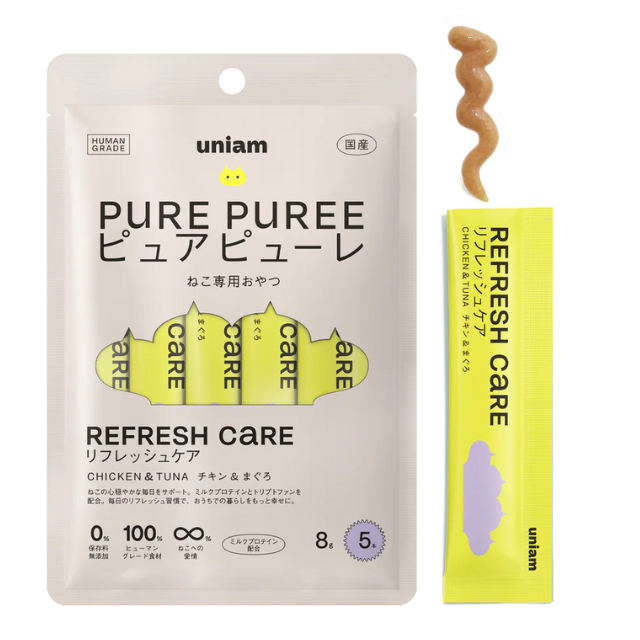 【ねこ特化ヘルスケアブランドuniam】イオンペット運営のペテモ全国162店舗で、メディカル発想の機能性おやつ「ピュアピューレ」を販売開始