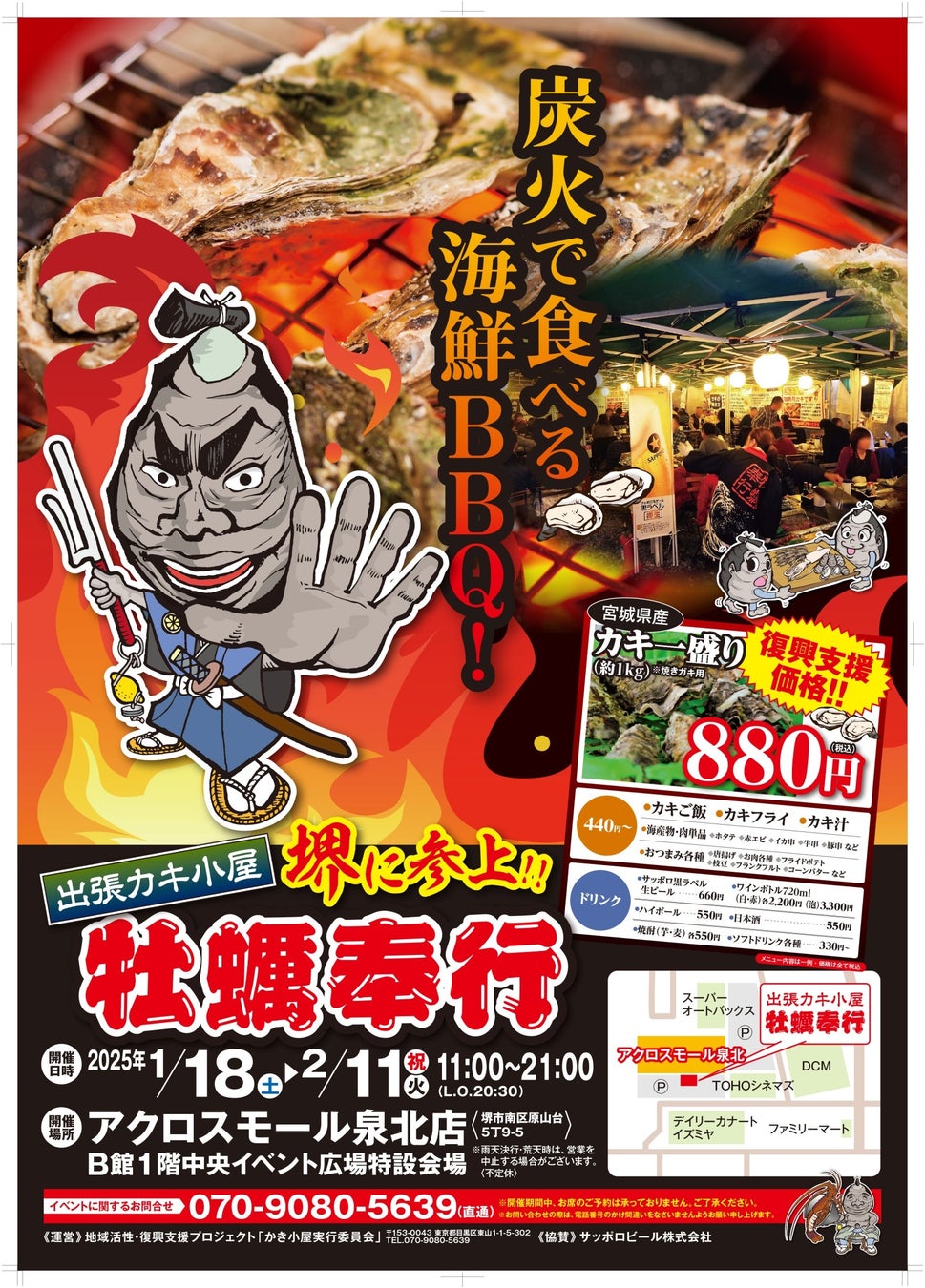 地域活性・復興支援プロジェクト 出張牡蠣小屋 牡蠣奉行大阪府松原市に参上!1/10 -2/9の限定出店!セブンパーク天美で牡蠣を堪能!!