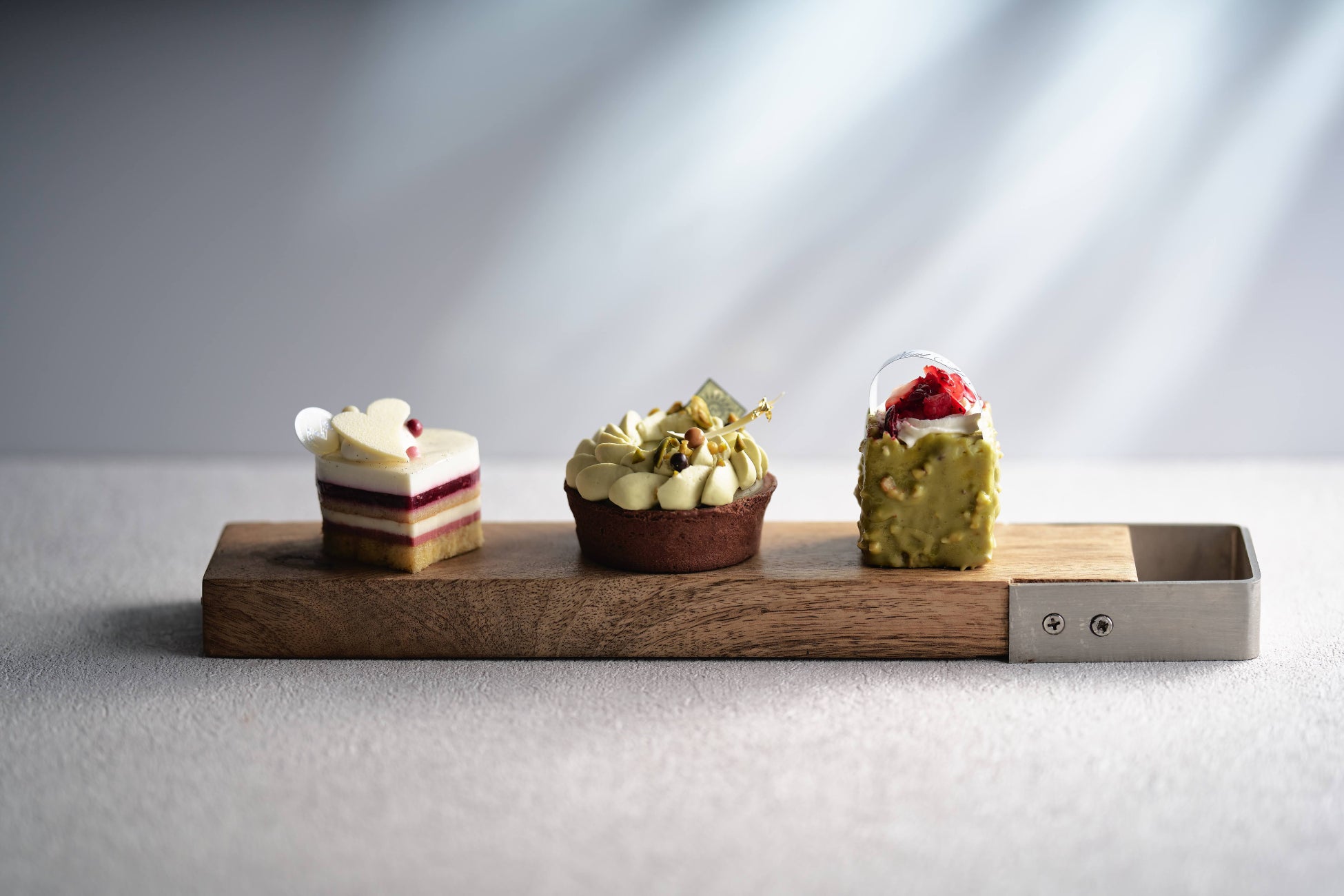 フランボワーズとバニラを合わせたムースケーキやピスタチオとキャラメルを組み合わせたショコラタルトなど、素材と素材を掛け合わることで生まれるマリアージュが楽しめる3種類のケーキを展開。