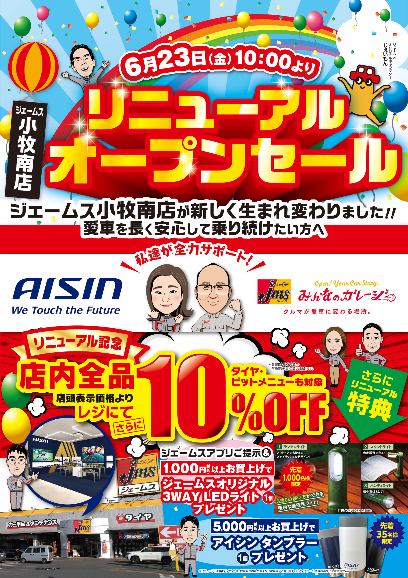 自動車部品メーカーアイシンが運営するジェームス小牧南店がリニューアルオープン