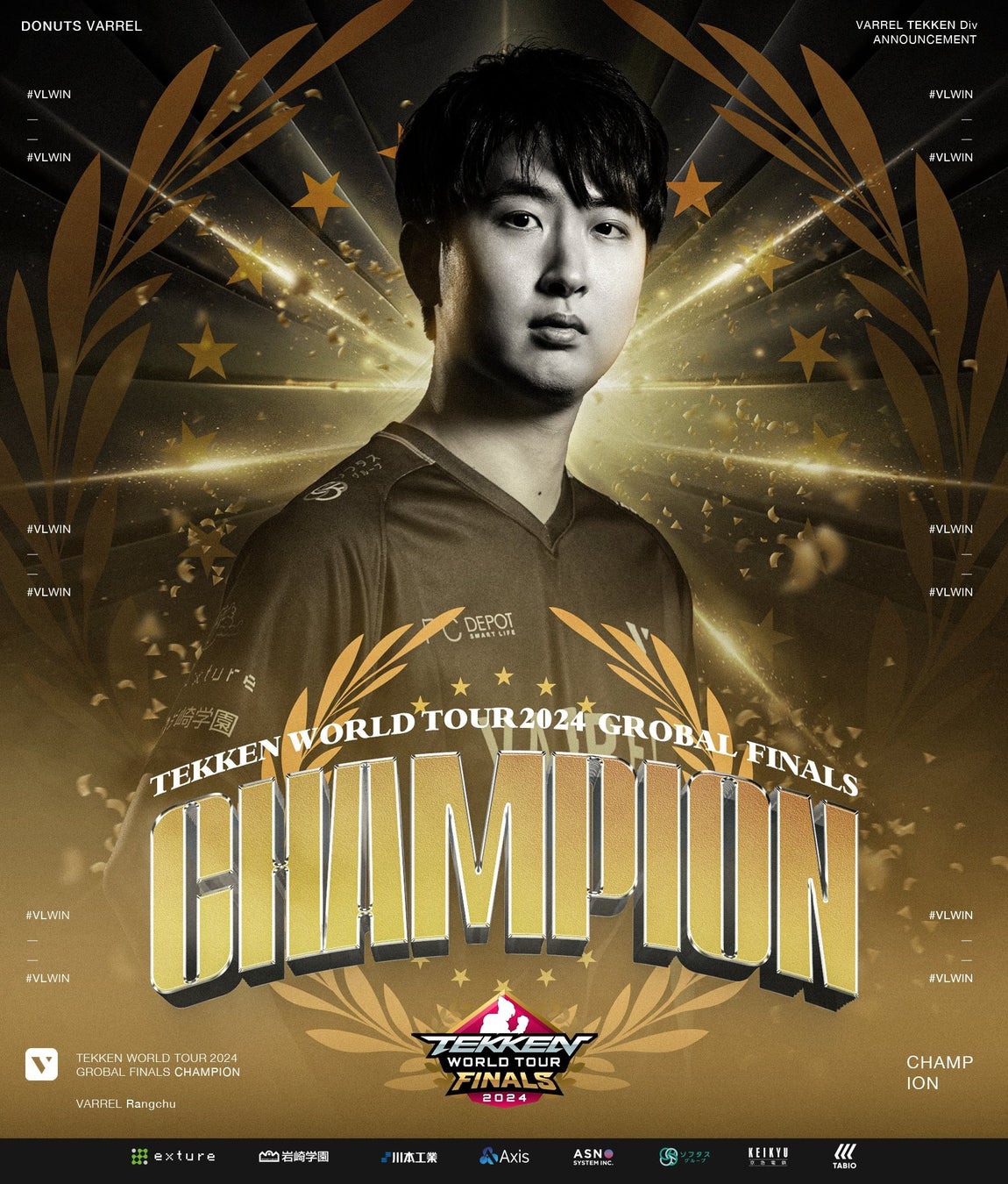 eスポーツ事業を手がける株式会社CELLORB(本社:神奈川県横浜市、代表取締役社長:鈴木文雄)は、運営するプロeスポーツチーム「DONUTS VARREL」鉄拳部門のRangchuが、株式会社バンダイナムコエンターテインメントが主催する世界大会「TEKKEN World Tour 2024(鉄拳ワールドツアー2024/TWT2024)」にて世界1位を獲得したことをお知らせいたします。