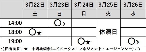 出演 早野ゆかり(劇団俳優座) 竹田有美香 中﨑絵梨奈(エイベックス・マネジメント・エージェンシー)