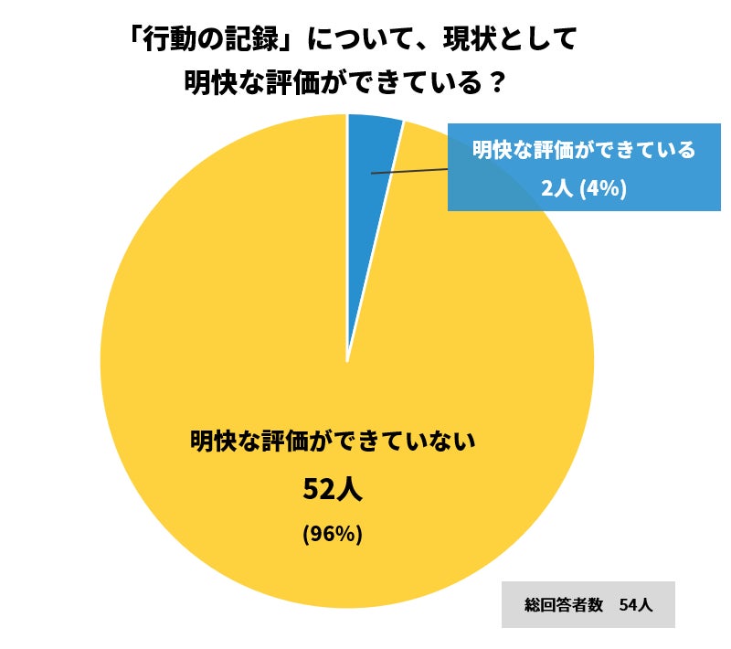 「行動の記録」に関して「明快な評価ができている」と答えたのは、回答者54名中2名のみ、全体の4%でした。