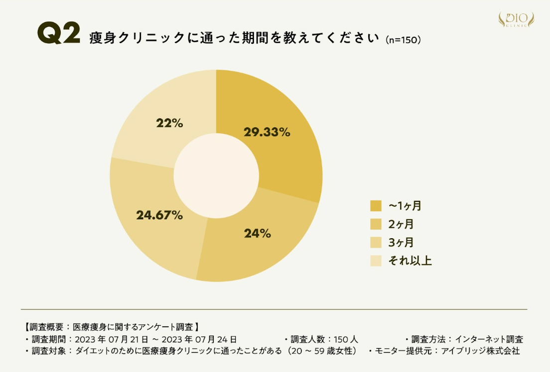 ディオクリニックが医療ダイエット経験者150名の口コミを調査!効果の実感を大きく左右する鍵は「継続期間」と判明
