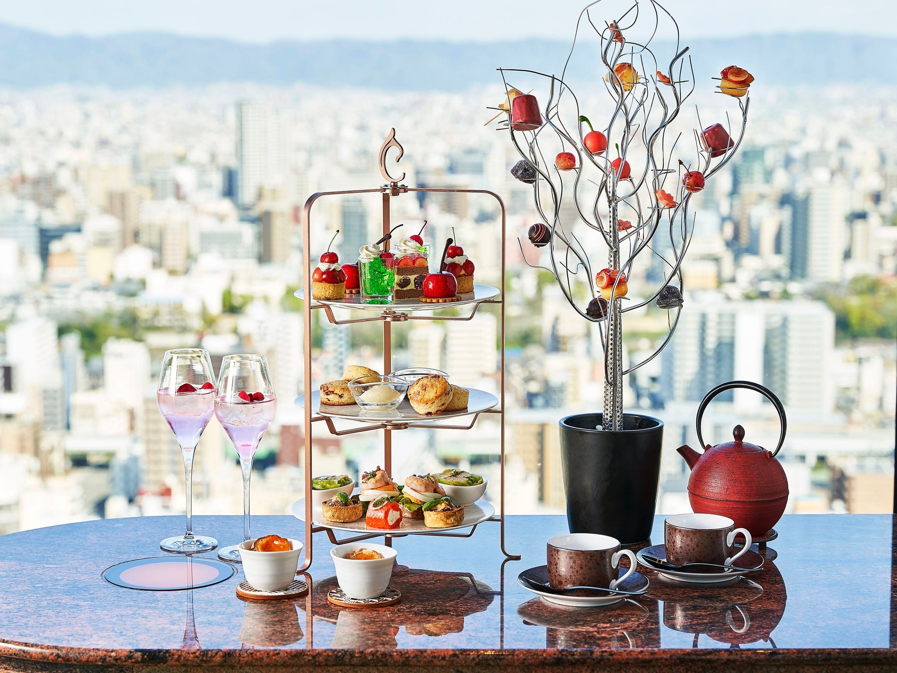 2023年7月1日(土)に大阪・難波に開業したタイ発のセンタラグランドホテル大阪(所在地:大阪市浪速区難波中2-11-50、総支配人: 中川 繁樹)は、初夏に旬を迎えるさくらんぼや、アメリカンチェリーをふんだんに使用したスイーツと、シェフこだわりの本格的な味わいが魅力のセイヴォリーを定番の3段スタンドとツリー型スタンドの両方で堪能できる「さくらんぼアフタヌーンティー」を、2024年5月1日(水)~7月3日(水)までの2か月間限定でホテル最上階にある絶景ラウンジ「スモーク&スピン」にてご提供いたします。