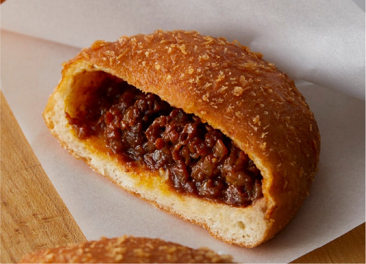 <軽食>「築地ボン・マルシェ」の「オリジナル佐賀牛カレーパン」・「搾りたて愛媛県産みかんジュース」を提供します。