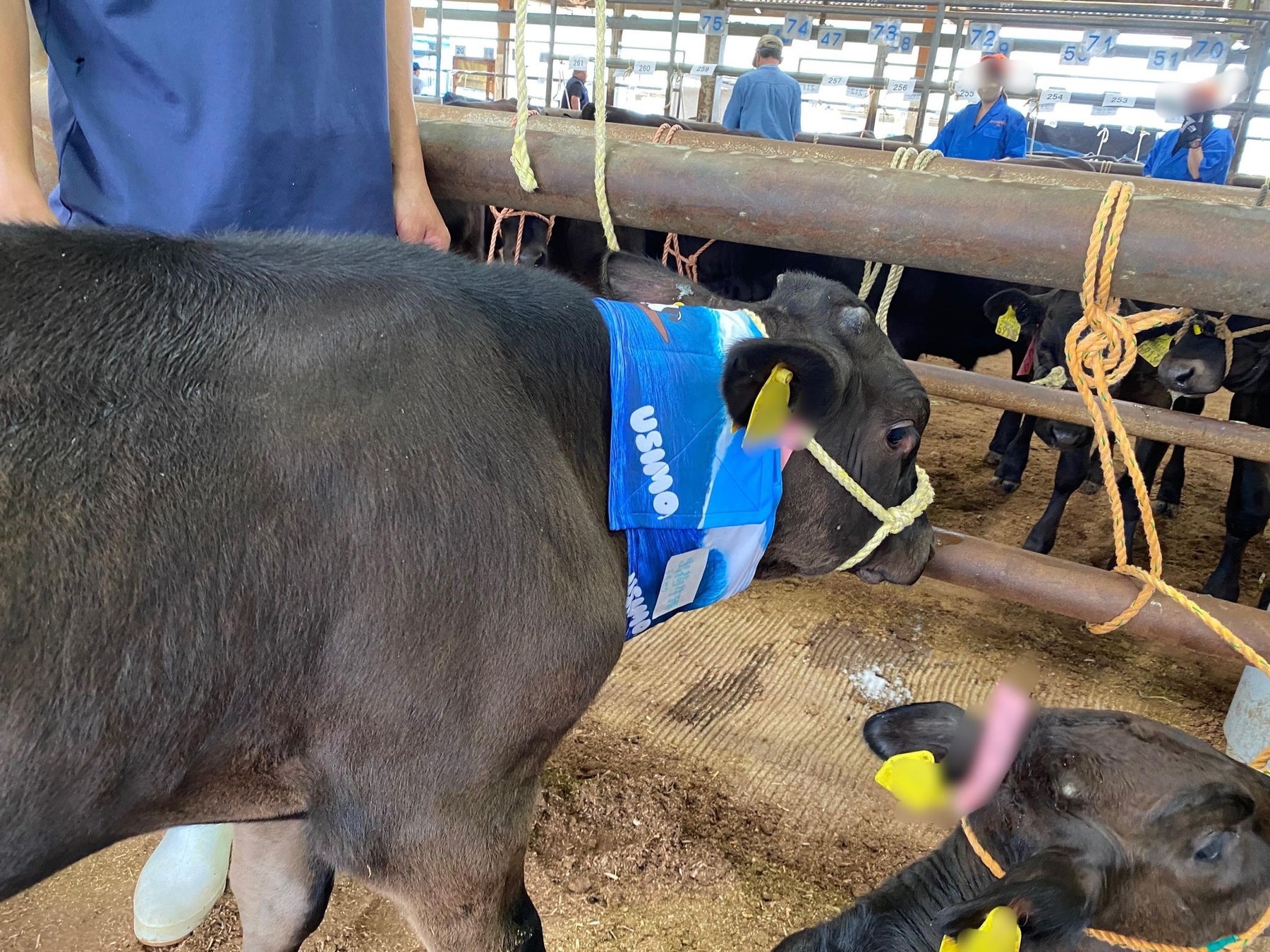 【USIMO】牛の健康をサポート! 夏も快適・電源不要・特殊構造のネッククーラー、広島家畜市場で展示販売 7/12
