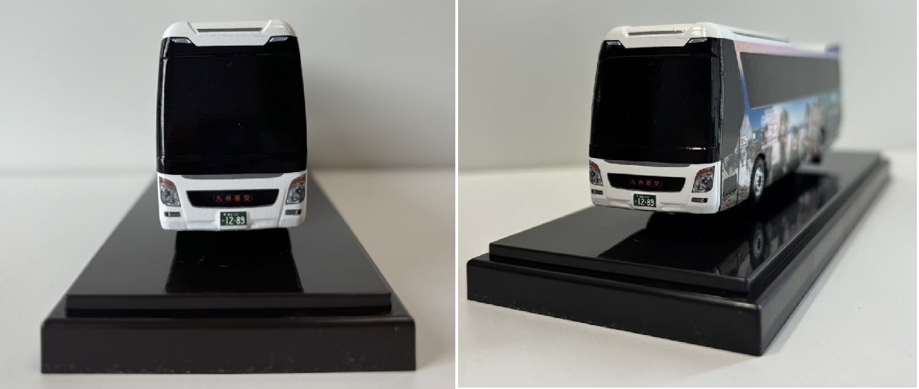 バスの模型化につきましては、有限会社アド・ウィング社(所在地:東京都目黒区目黒本町1-4-3/代表取締役:畠 耕一郎)の「Desk Top Models Collection」シリーズ規格(1/80スケール)で、イベント開催中にラッピング運行する車両の内1台、阿蘇山上線で使用するヒュンダイ社製バスを模型化します。販売は弊社グループ熊本県特産品購入サイト「KUMATOKU(くまトク)」のみでの販売となります。