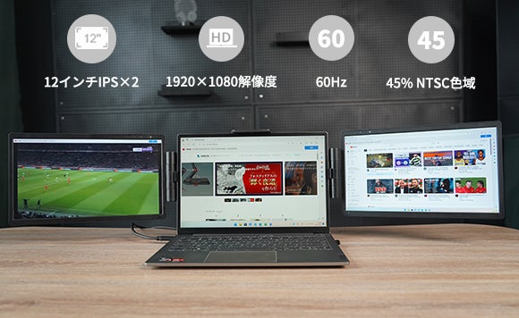 ・ケーブル1本でパソコンに接続し、2つの拡張ディスプレイを追加可能!