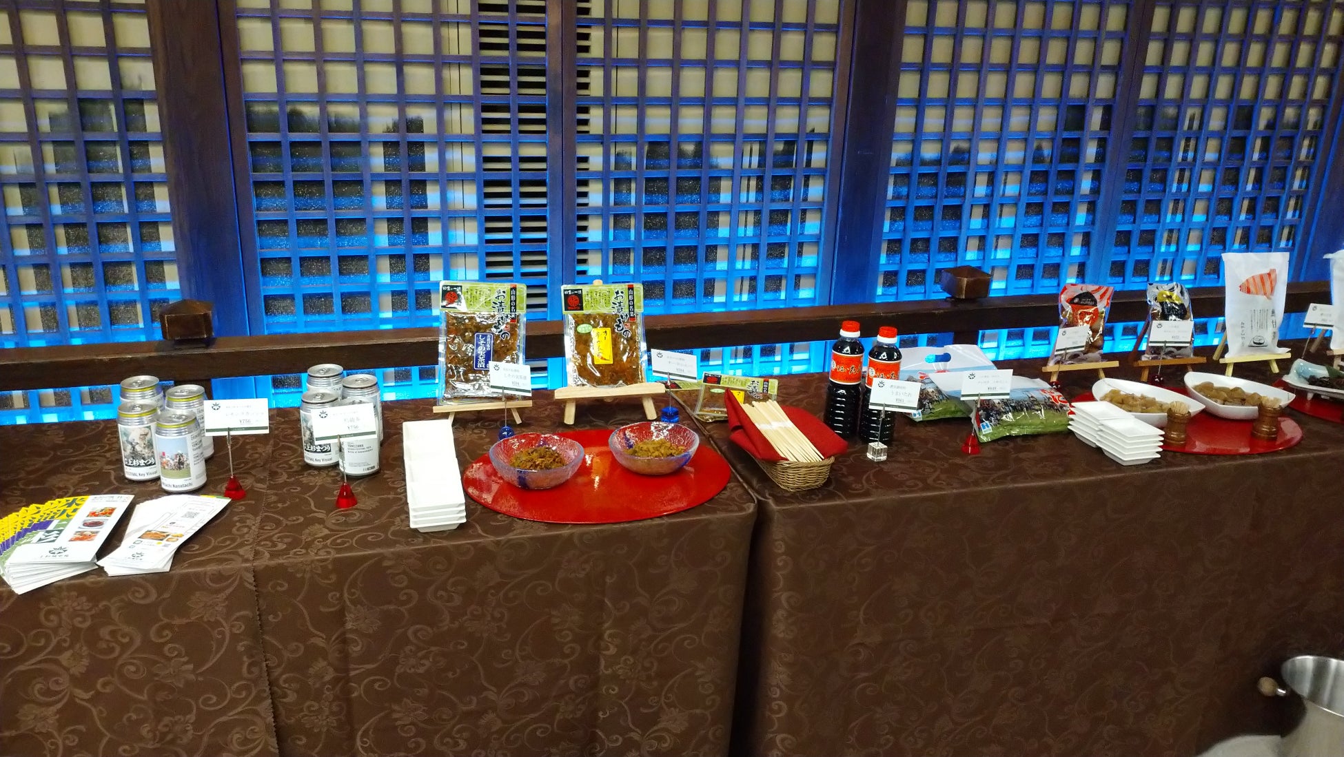 前半2日間の夜には、希望者を対象とした夕食会を開催。昨年よりも米沢らしさを意識し、米沢ならではの食材を使った料理をご提供、また、食事はビュッフェ形式で子どもが喜ぶメニューとしました。また、やまがた愛の武将隊による演武や、会場内には米沢の名産品やグッズ等のサンプル展示に加え、地酒の飲み比べを実施。さらに、地元民を交えた夕食会とすることで、参加者が米沢を知り、ファンになっていただけるような工夫を盛り込みました。