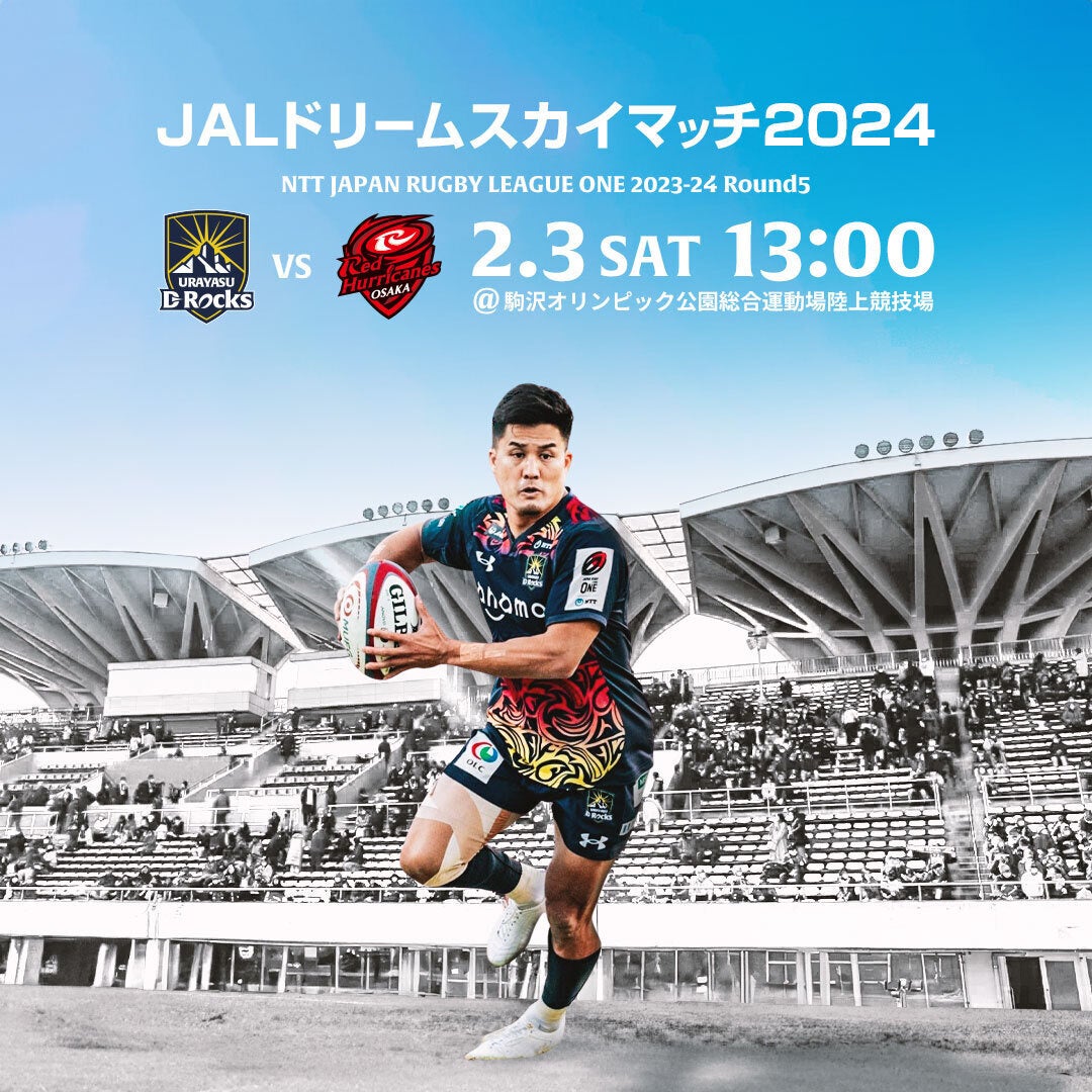 この度、NTT JAPAN RUGBY LEAGUE ONE 2023-24 DIVISION2 第5節 レッドハリケーンズ大阪戦のマッチスポンサーとして、チームのトップパートナーである日本航空株式会社(東京都品川区、代表取締役社長執行役員:赤坂 祐二)に協賛いただき「JALドリームスカイマッチ2024」として開催することが決定いたしました。