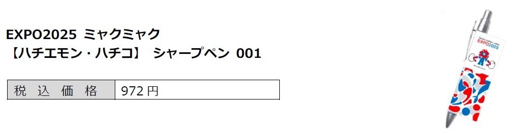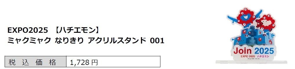 コラボレーション商品は、アクリルスタンド、アクリルキーホルダー、ネックストラップ、ボールペン、シャープペン、クリアファイルを発売。アクリルスタンドは、台座にあるQRコードを読み込むとAR(拡張現実)が始動し、ミャクミャクと「ミャクミャクなりきりハチエモン」が飛び出して動き出す動画の仕掛けが!おなじみの姿のハチエモンとハチコを描いた商品など、青と赤を基調としたデザインを取り揃えています。