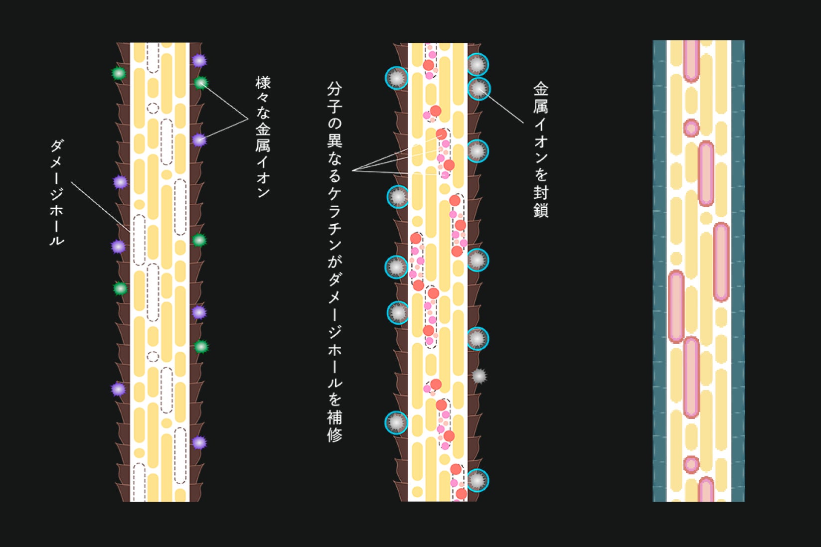 低分子・中分子・高分子3種類のケラチンが毛髪内部&キューティクルのダメージを補修