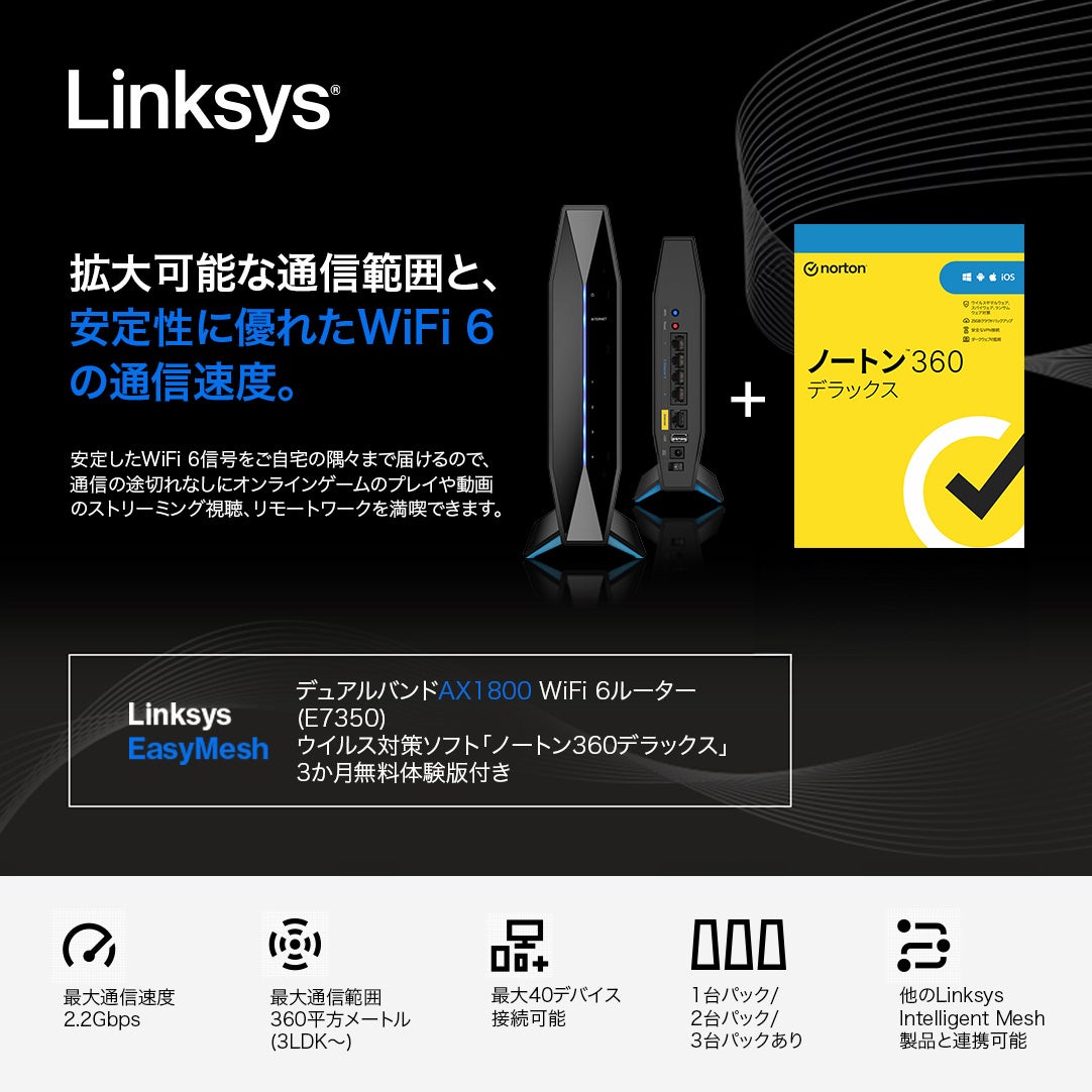 Linksys E7350 EasyMesh対応AX1800デュアルバンドメッシュWiFi 6システム(MX2000シリーズ)のノートン製品バンドル版