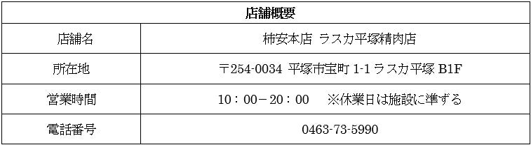 明治4年(1871年)牛鍋店として創業以来、150年以上の歴史を誇る肉の老舗、株式会社柿安本店(本社:三重県桑名市/代表取締役社長:赤塚保正、以下:柿安)は、基幹事業である精肉の店舗「柿安 精肉」を2025年3月3日(月)、JR平塚駅直結のショッピングセンター「ラスカ平塚」にオープンいたします。