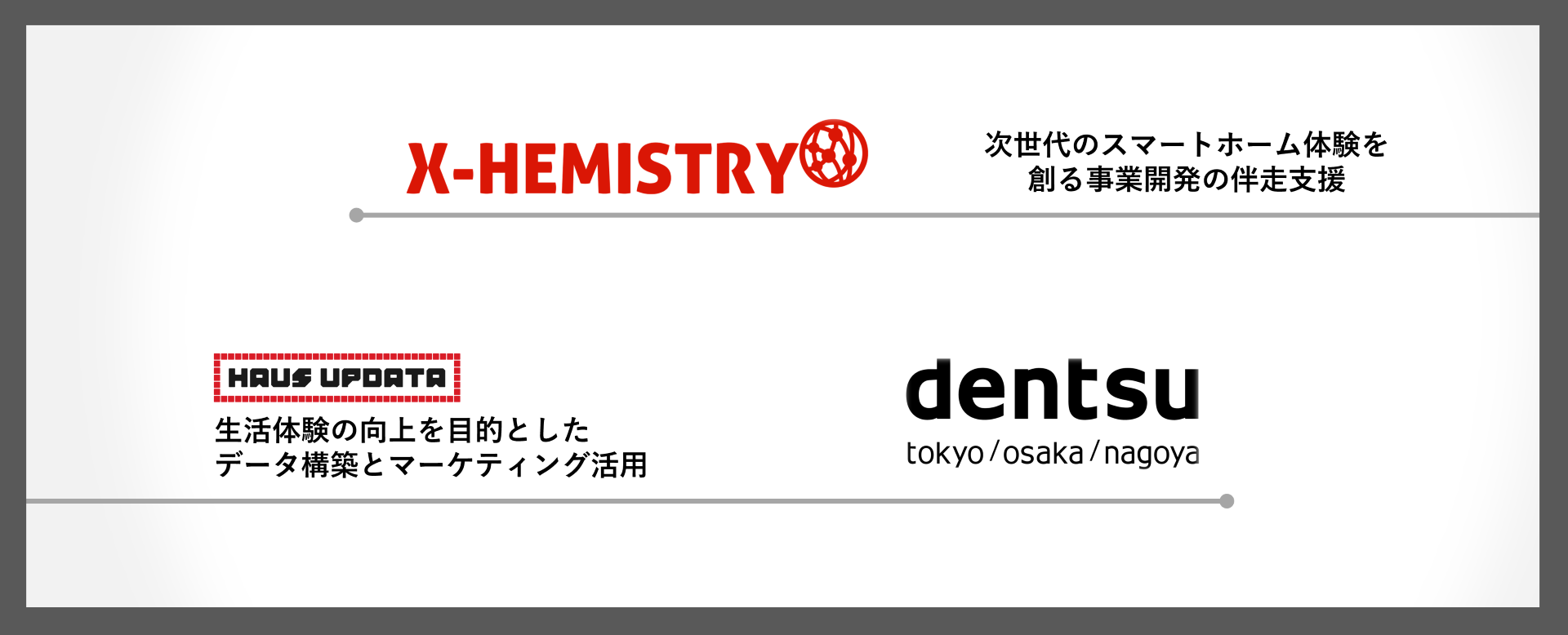 両社は今後も、X-HEMISTRY のスマートホーム分野における技術的知見・基盤実装力と、電通のデータクリーンルーム・分析基盤、マーケティング支援のノウハウ、HAUS UPDATAなどで蓄積された膨大な生活者データの活用力・体験設計力の融合を推進・拡張していくことで、生活者と企業双方の課題解決およびスマートホーム市場のさらなる発展に貢献してまいります。