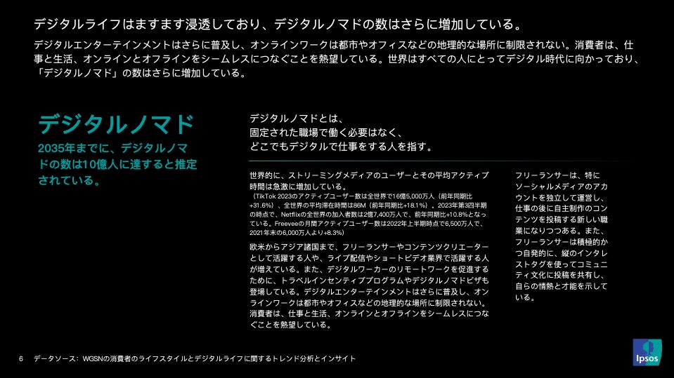 ① デジタルライフはますます浸透しており、デジタルノマドの数はさらに増えています。